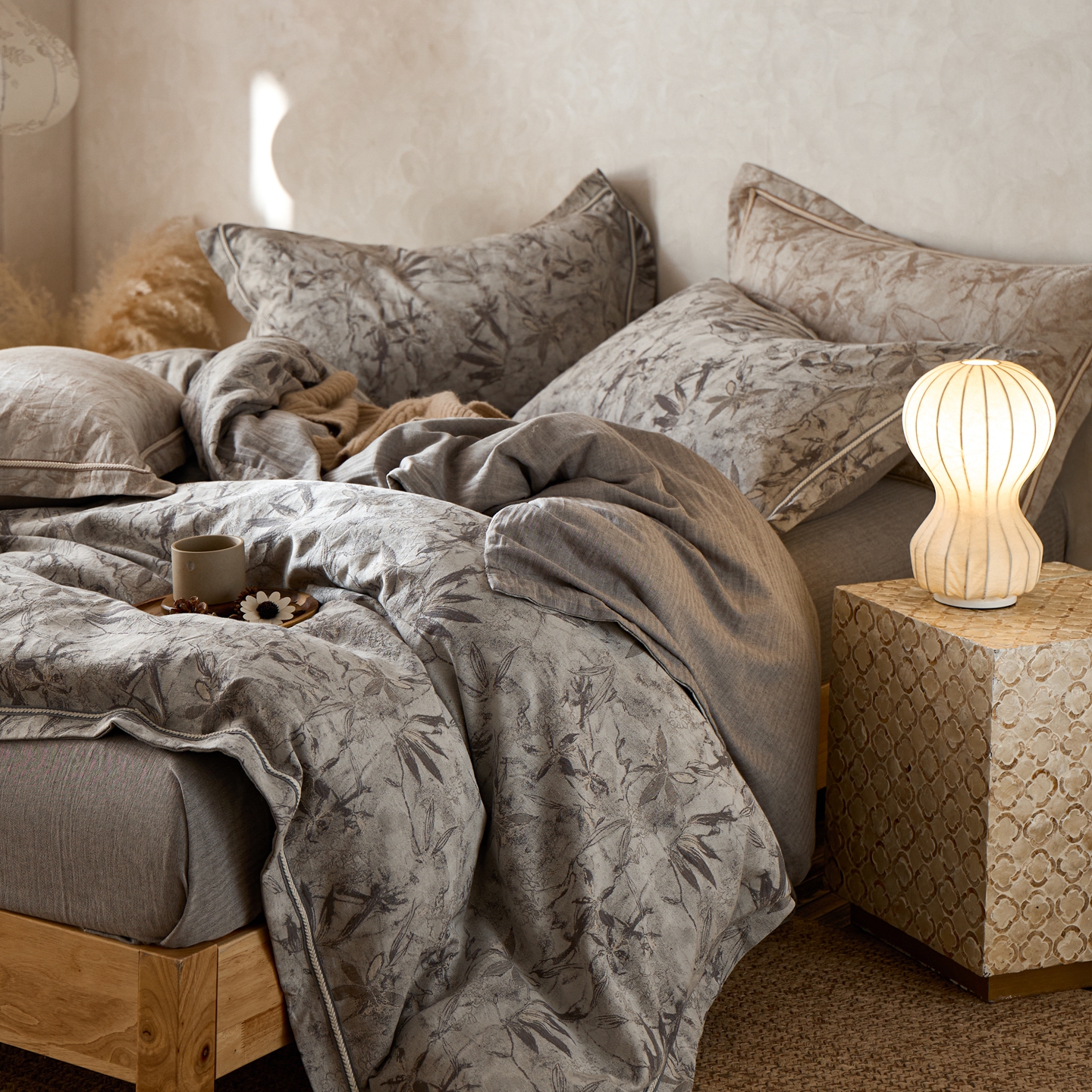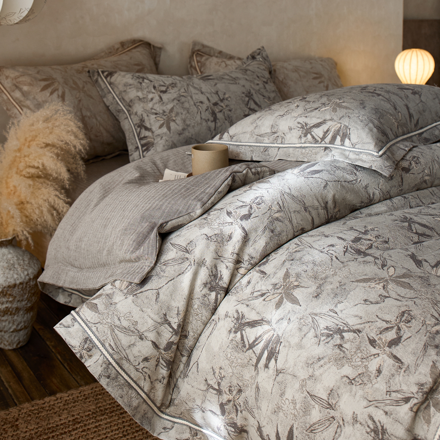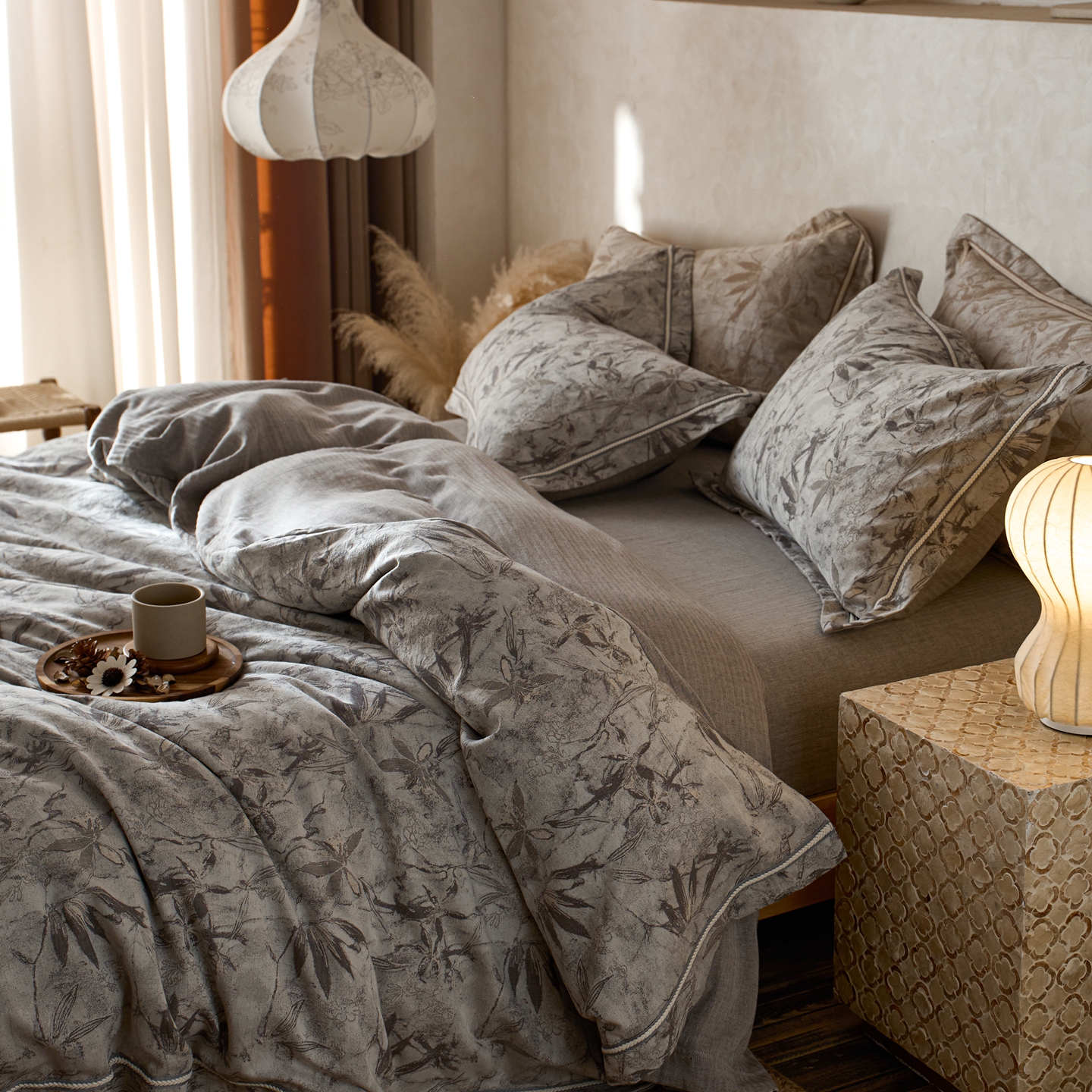 安莱生活2025新款棉麻高端系列四件套 俏江南-深灰