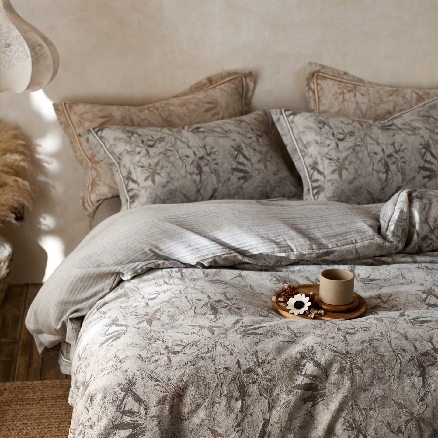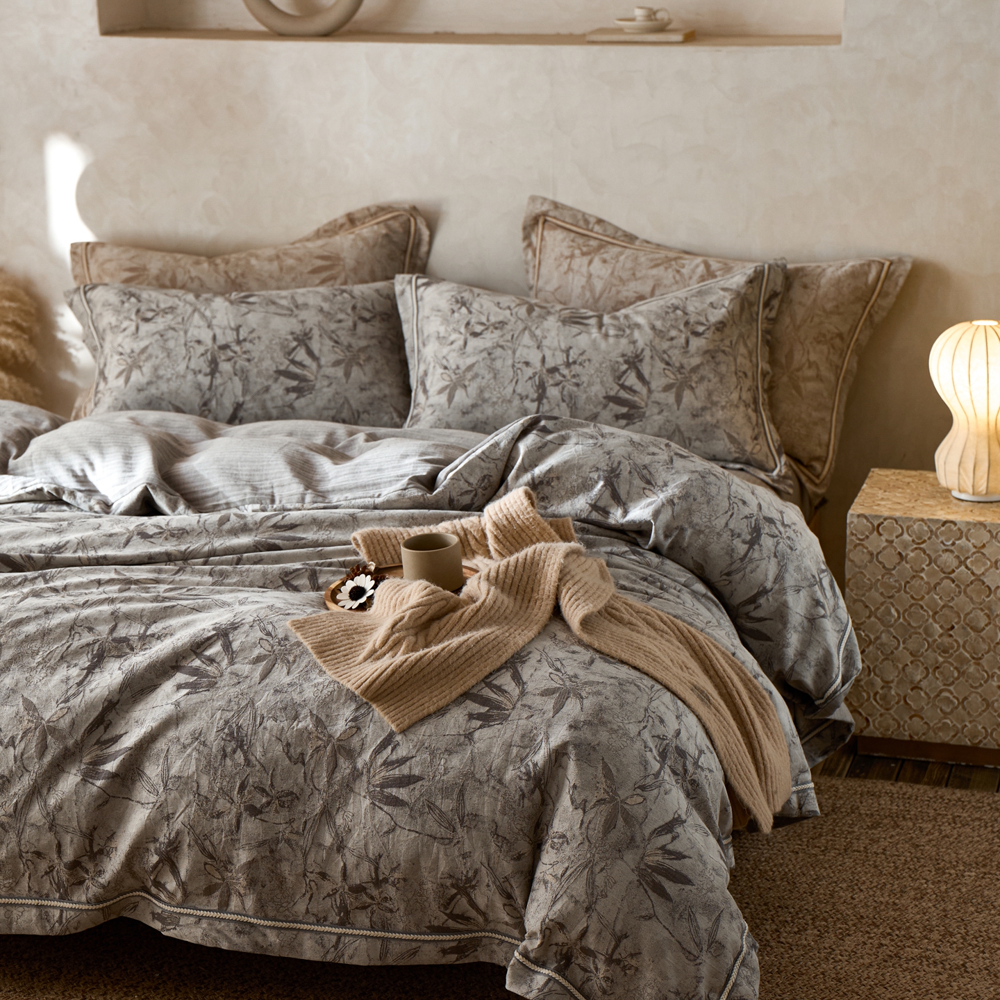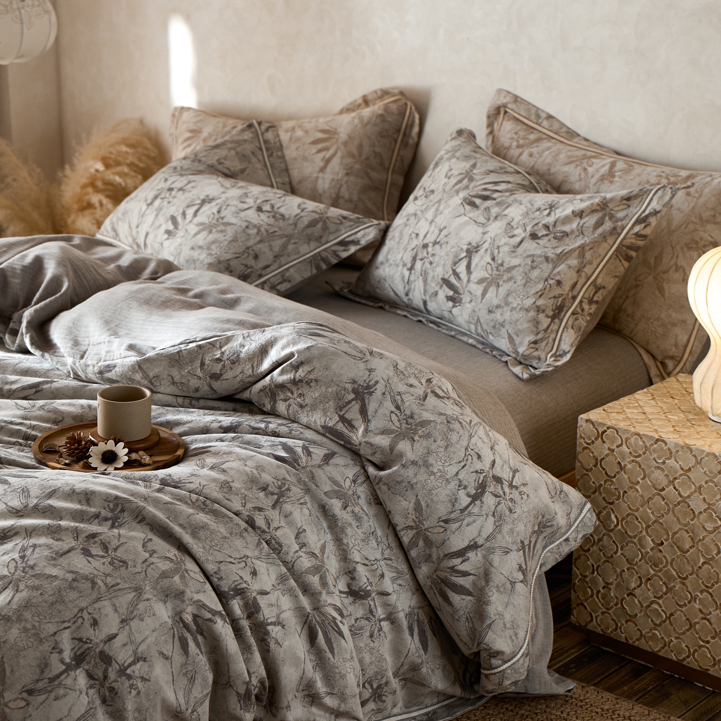 安莱生活2025新款棉麻高端系列四件套 俏江南-深灰