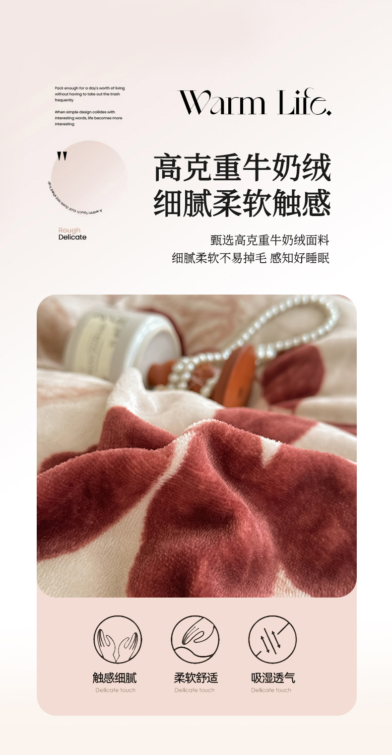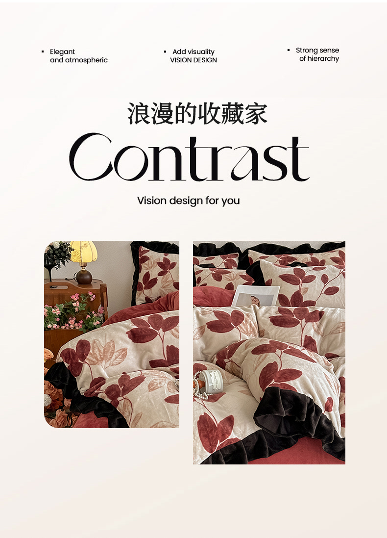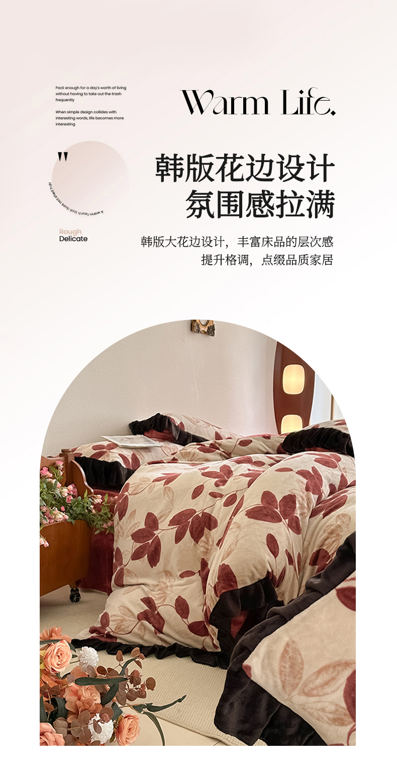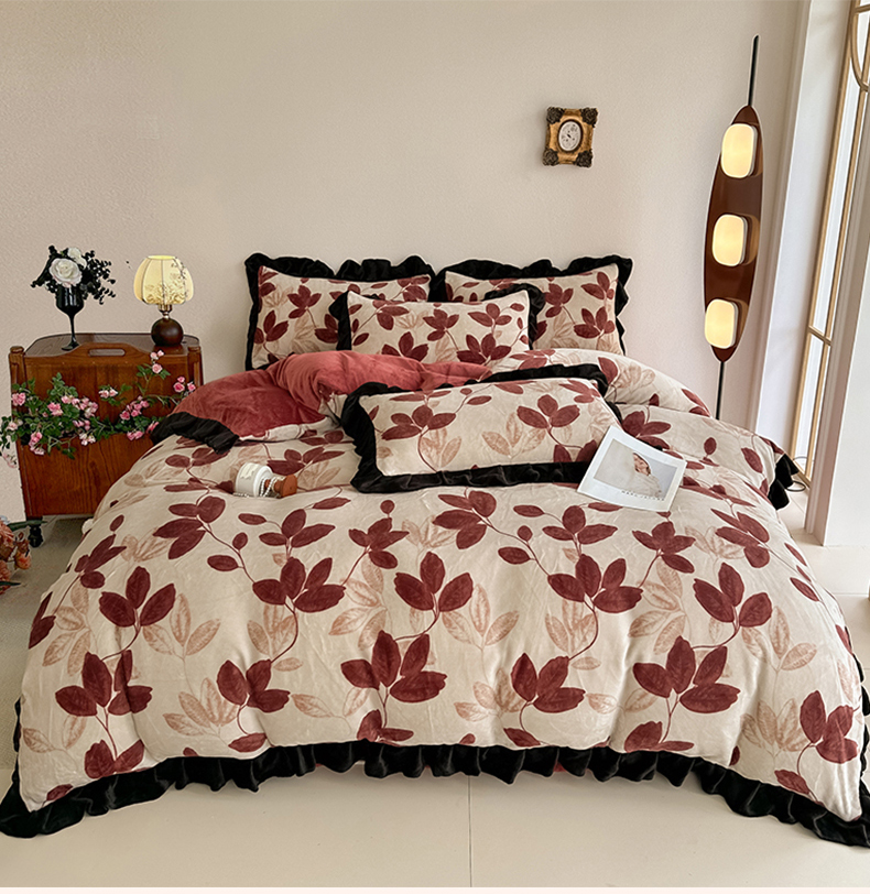 商品名称:亿品2025新款直播爆款韩版赫本风高克重牛奶绒四件套床裙款 8.5斤(有买家秀加v) 红叶寄暖
