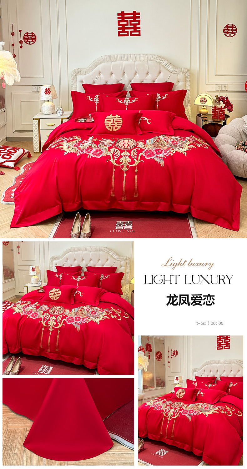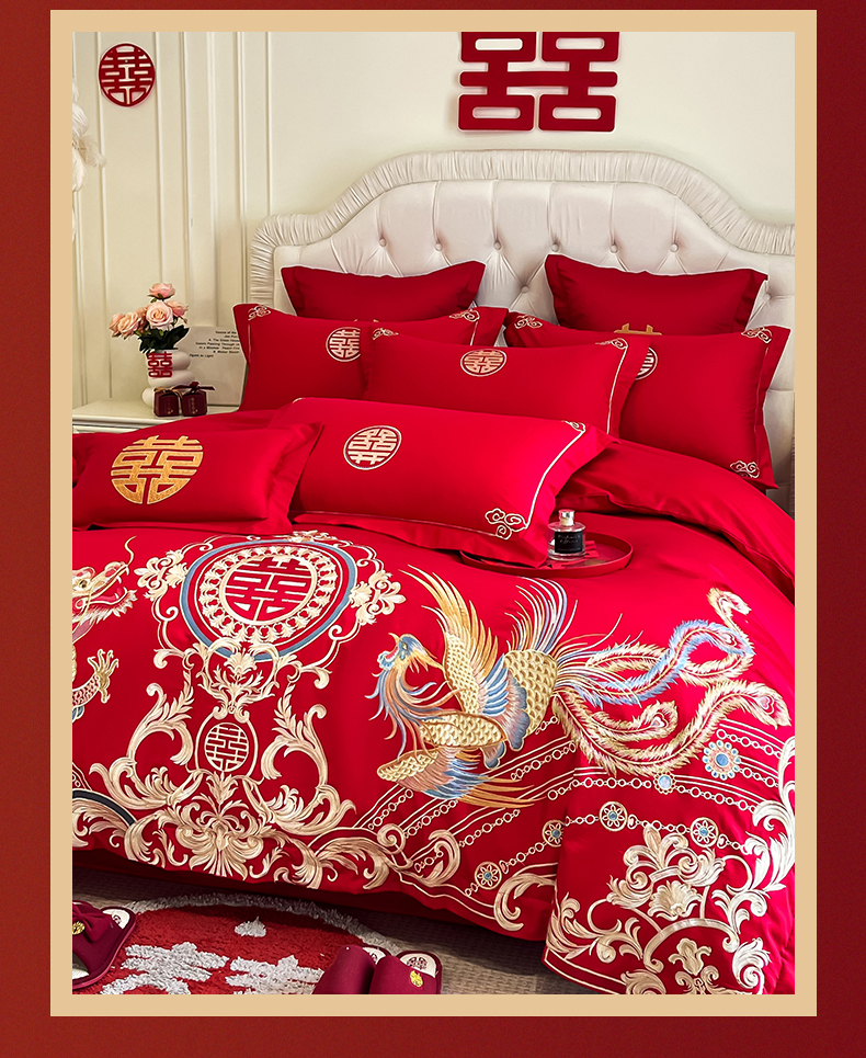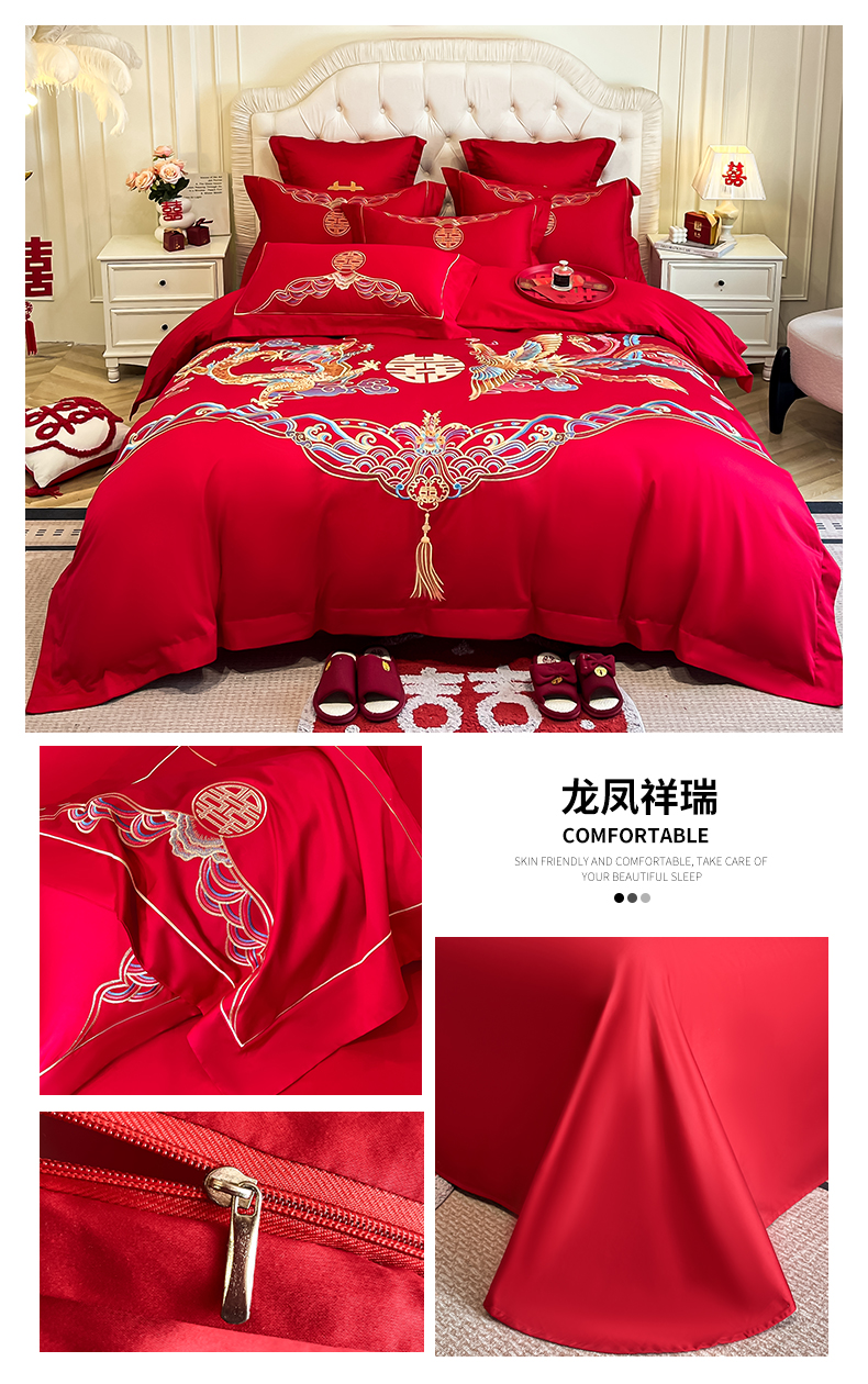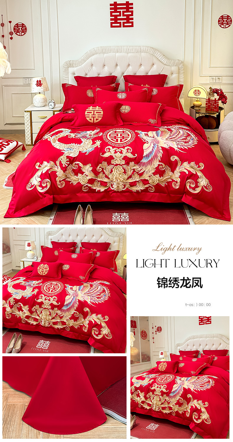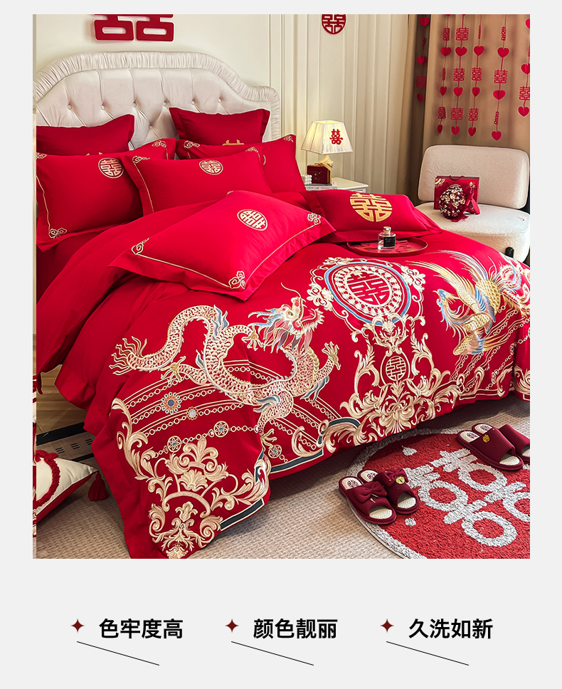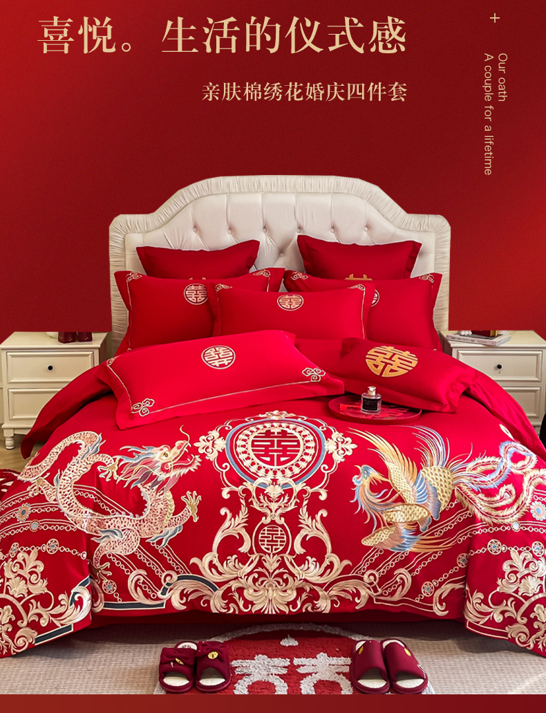 (总)欧乐蒂 2025冬季新品亲肤棉提花刺绣婚庆四件套,龙凤双喜,喜事花开