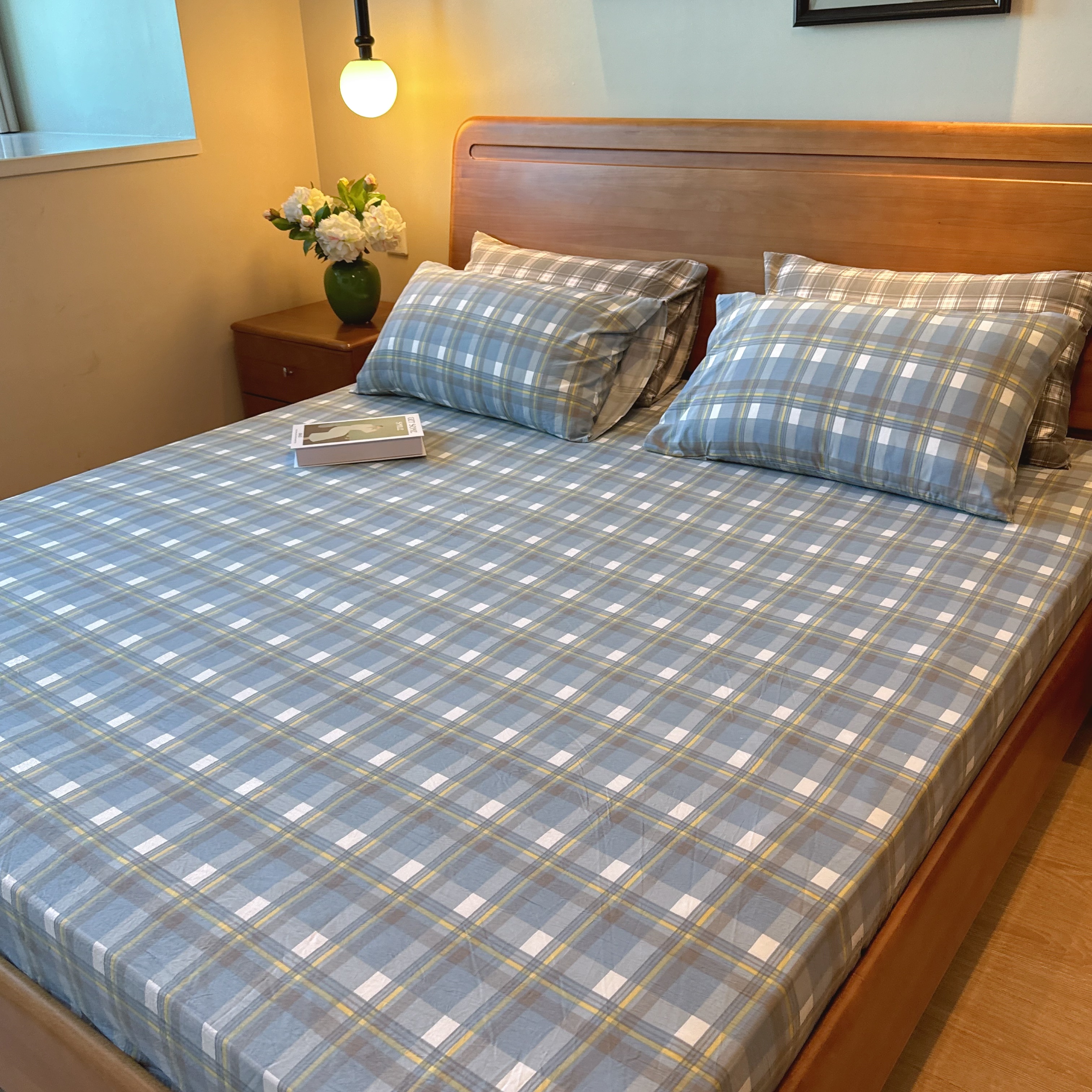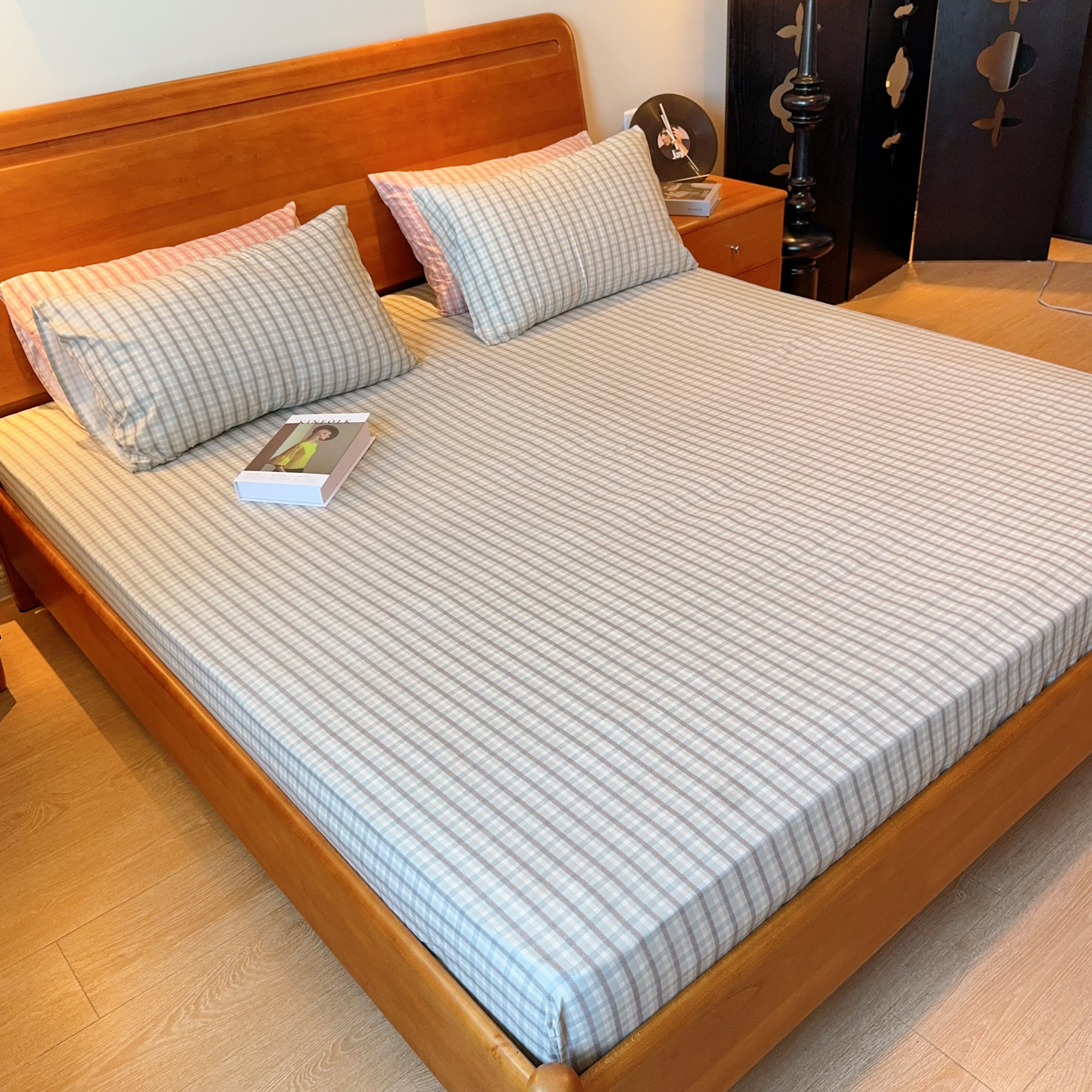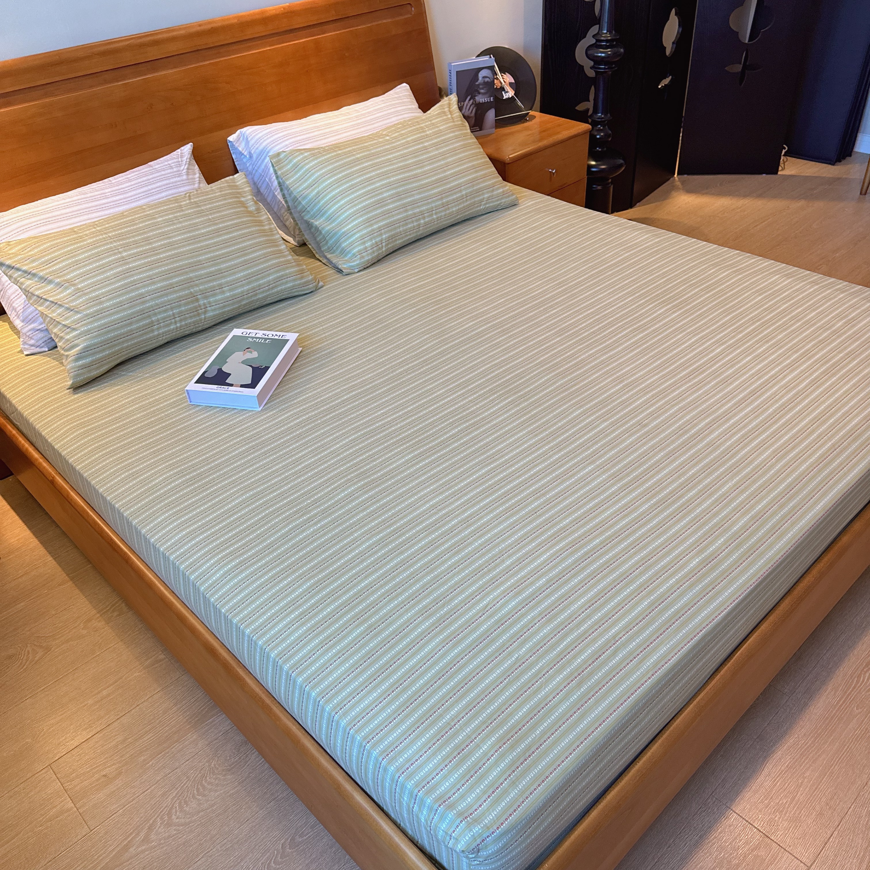 兜米家居 2025新款简约轻氧水洗色织棉床笠 格纹绿