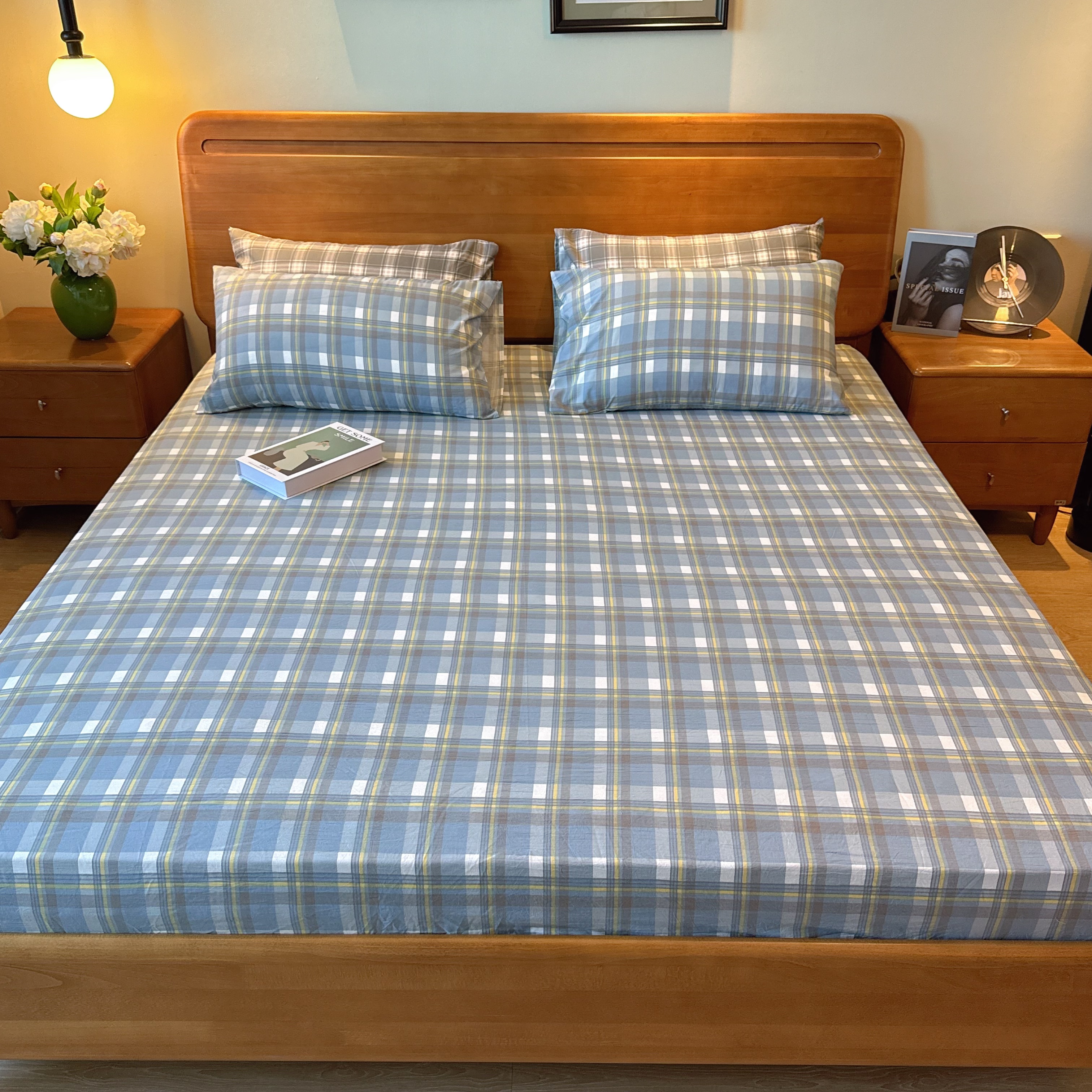 商品名称:兜米家居 2025新款简约轻氧水洗色织棉床笠 格纹绿