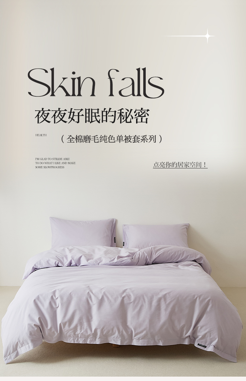 商品名称:EH家居 2025新款全棉磨毛纯色单被套-云栖系列 云栖-兰冰紫