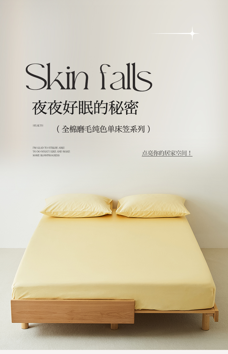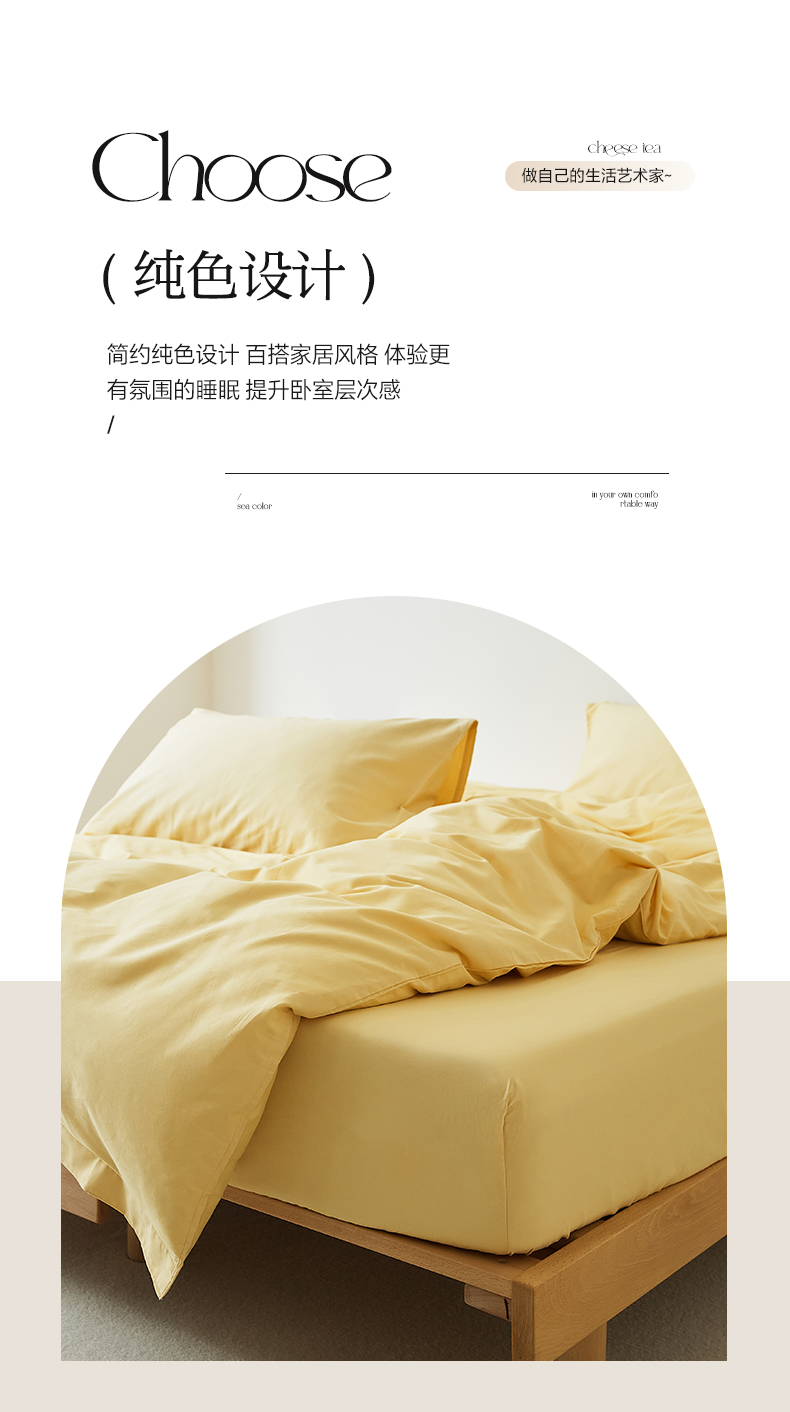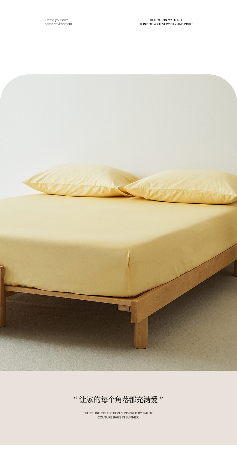 • 91家纺网 家纺一手货源 找家纺 EH家居 2025新款全棉磨毛纯色单床笠-云栖系列 樱黄