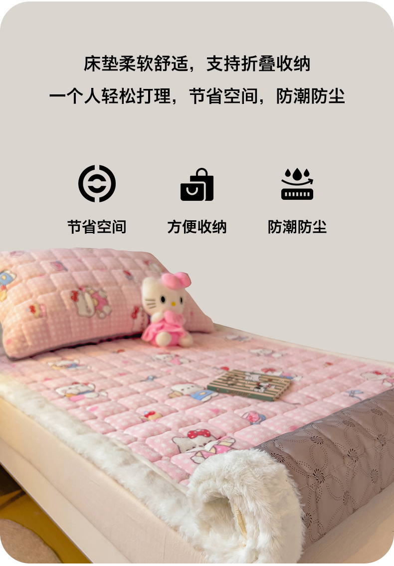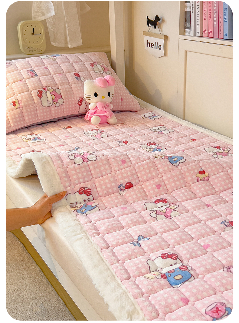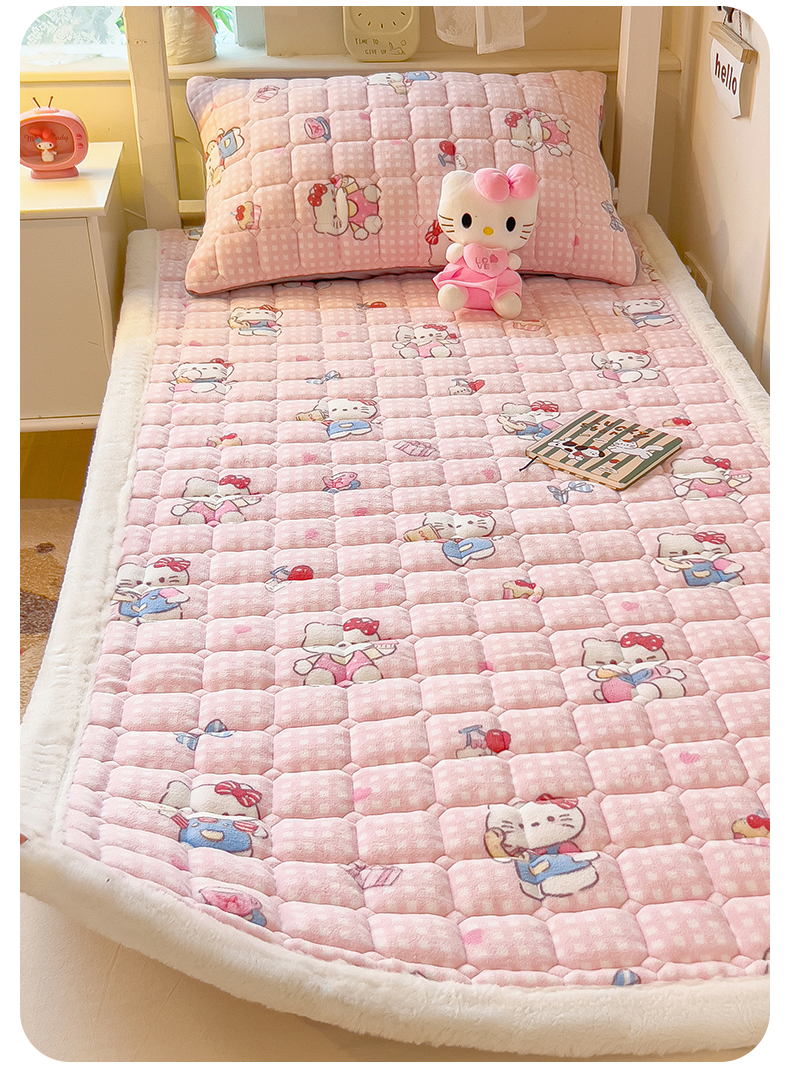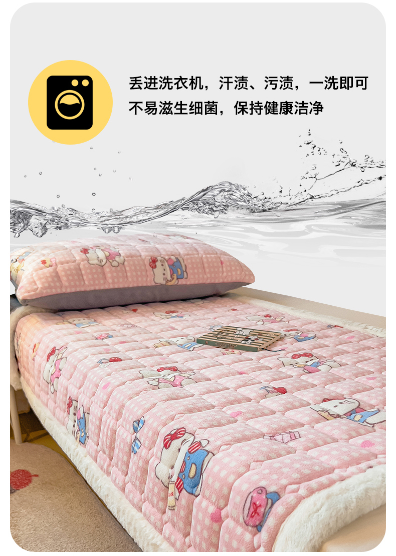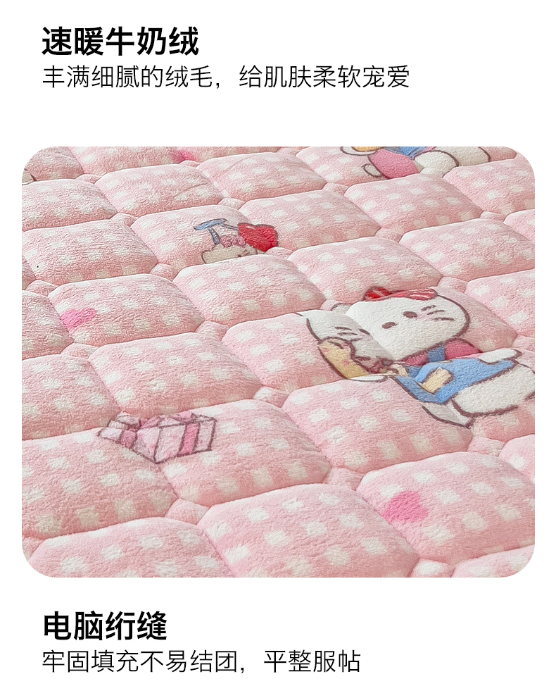 商品名称:丝幔家纺 2025新款牛奶绒印花床护垫学生款 甜心粉猫