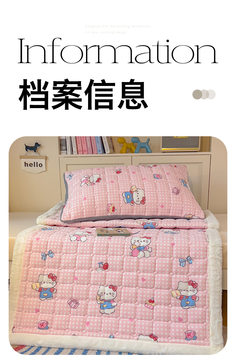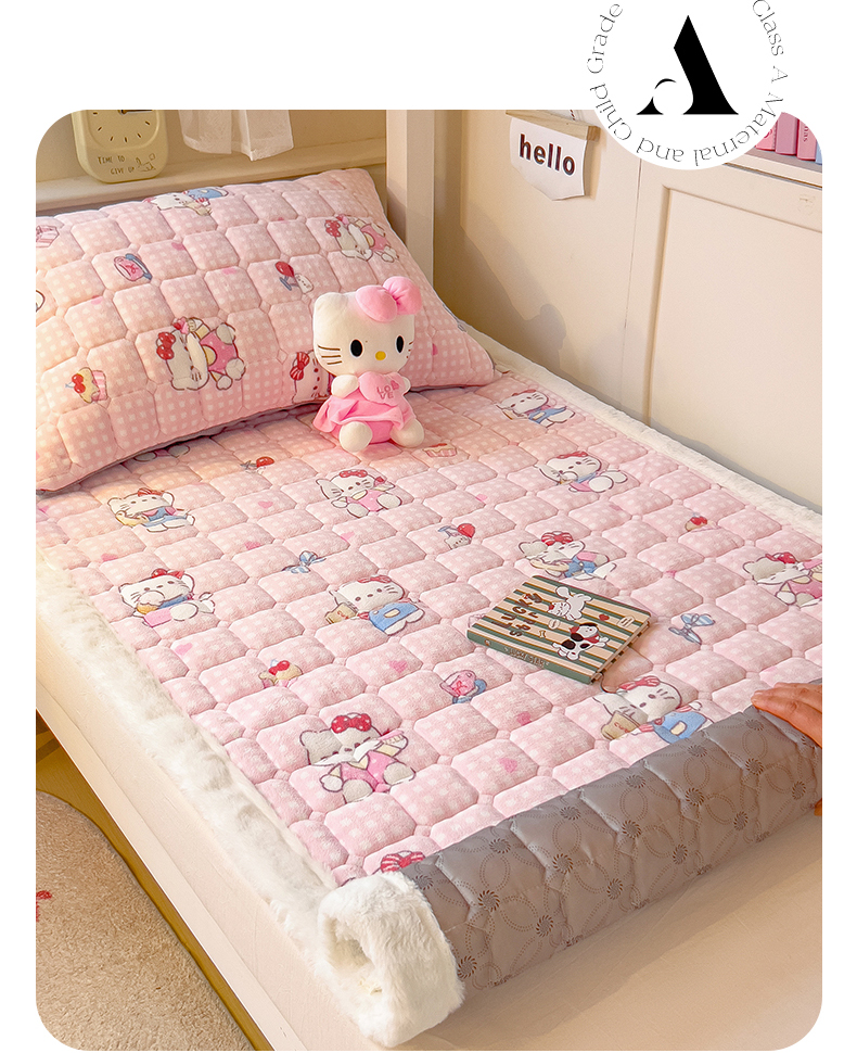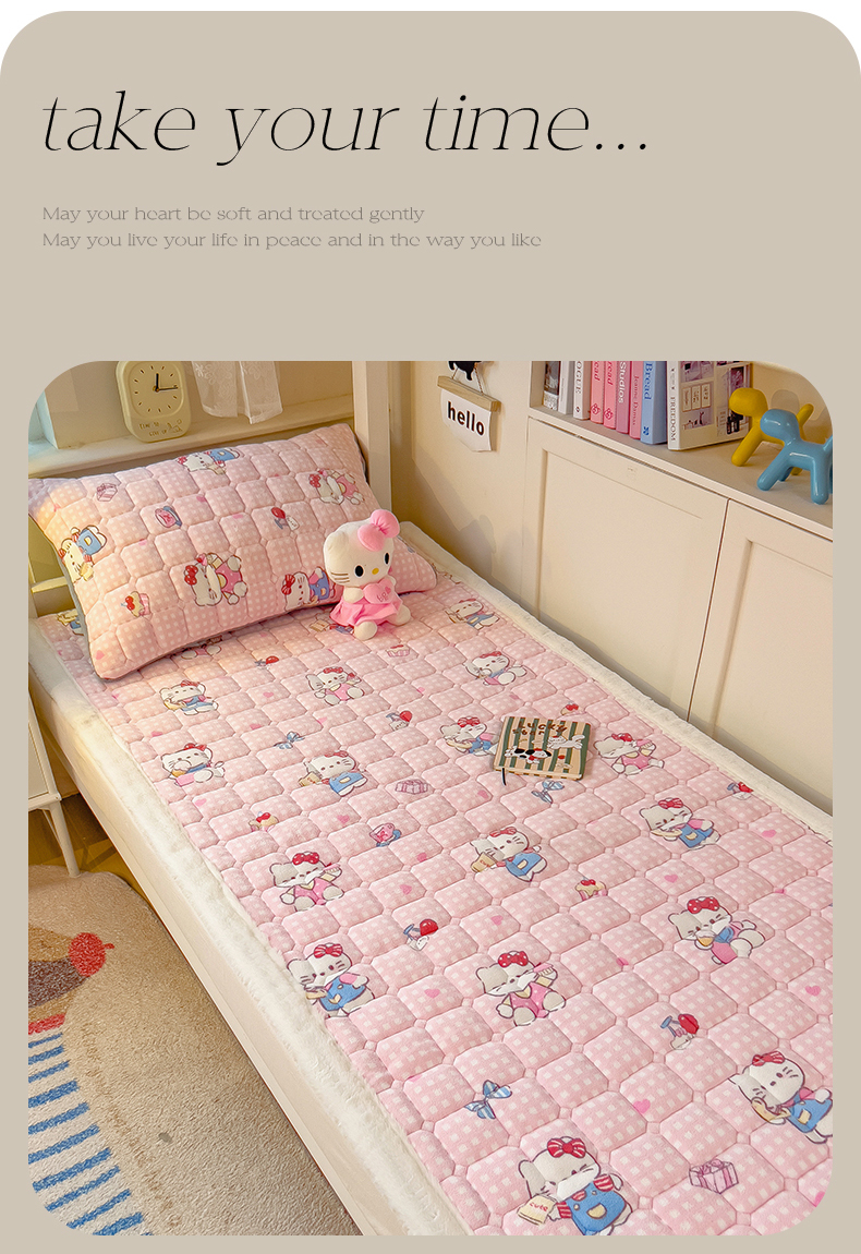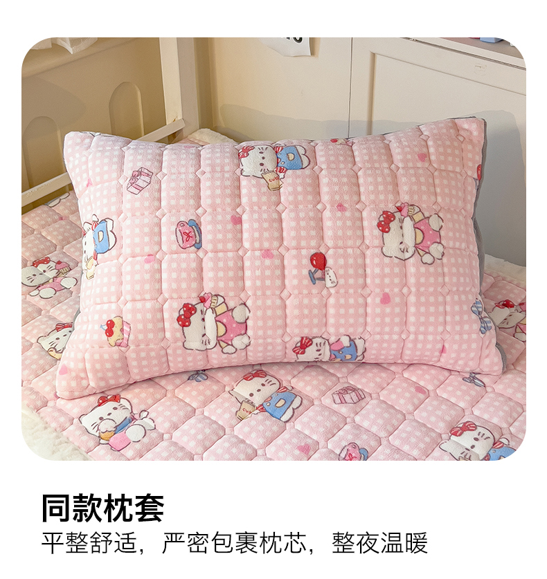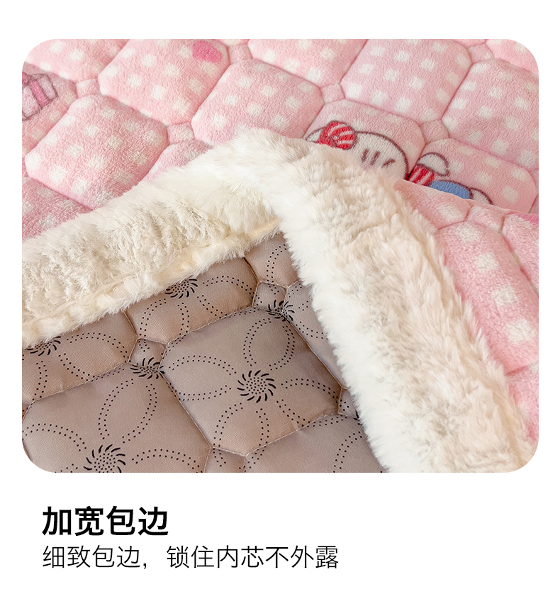 商品名称:丝幔家纺 2025新款牛奶绒印花床护垫学生款 甜心粉猫