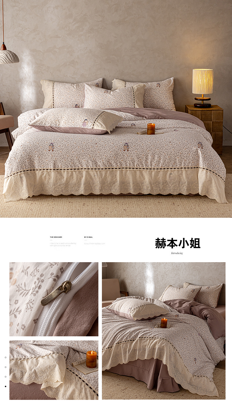 商品名称:芯贝儿 2025新款加厚全m花边双层纱水洗m四件套 莫兰