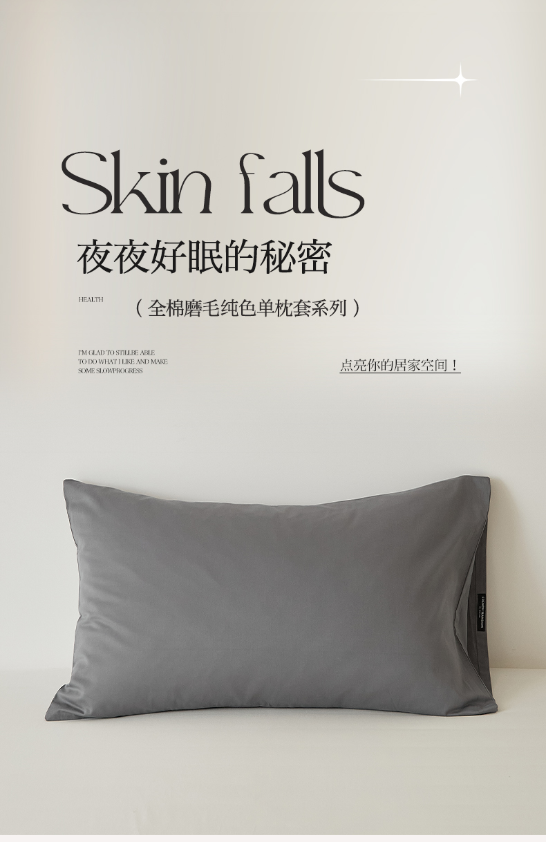 商品名称:EH家居 2025新款全棉磨毛纯色单枕套-云栖系列 云栖-银河灰
