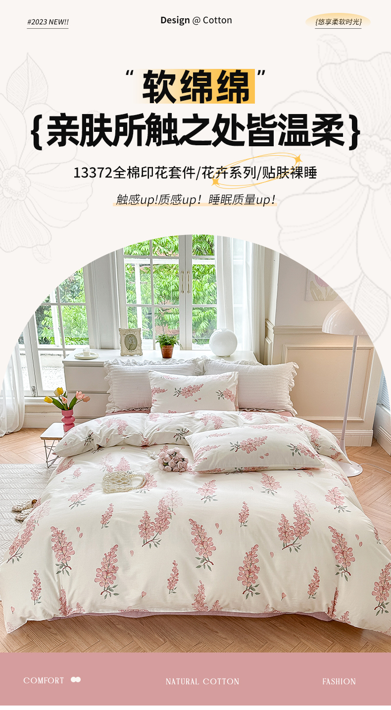 商品名称:(总)小叮当家纺仓储工厂店 2025新款A类母婴级40支13372纯棉全棉四件套学生三件套花卉简约宿舍床