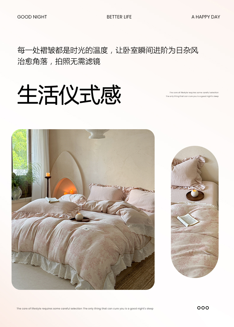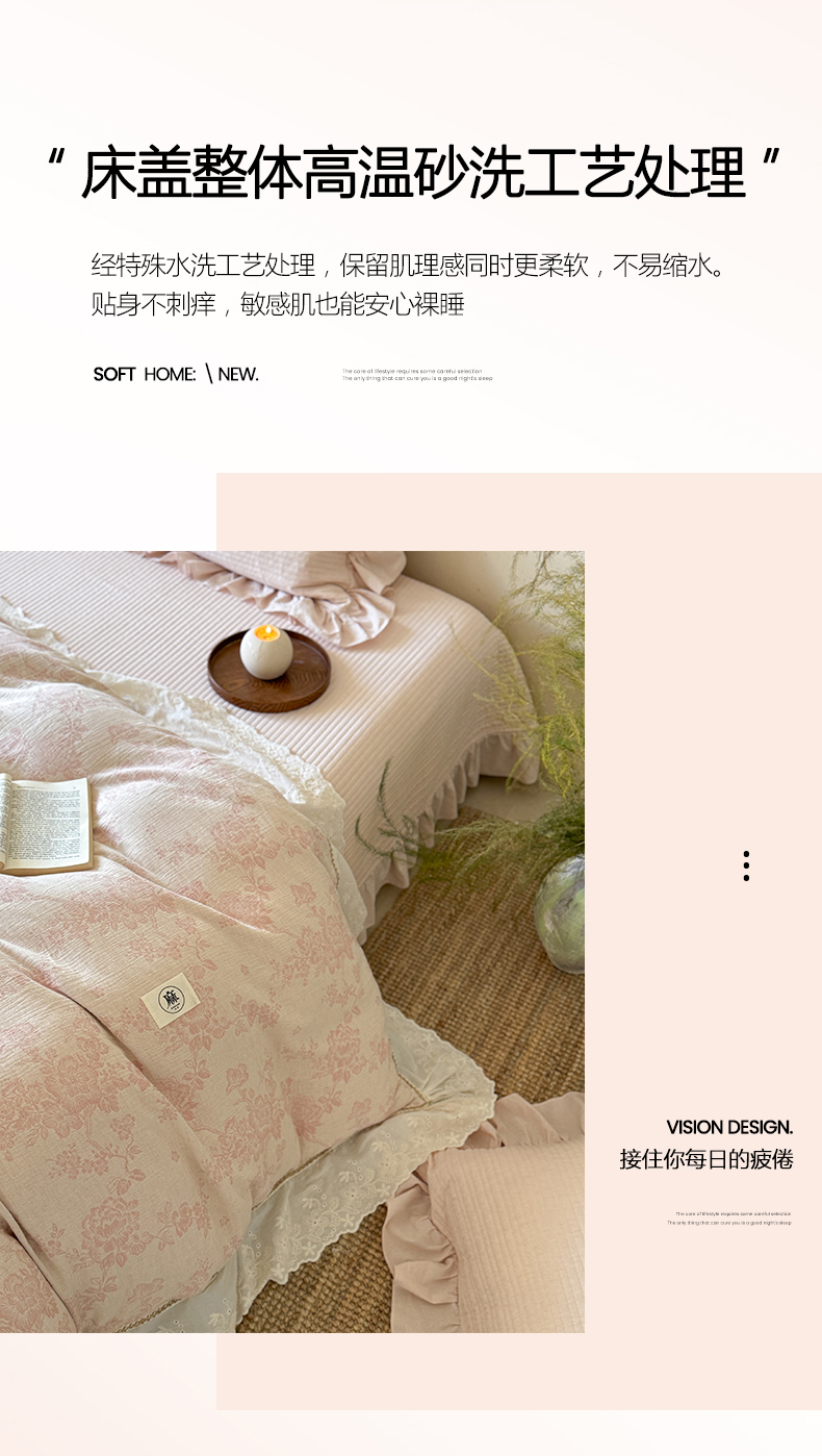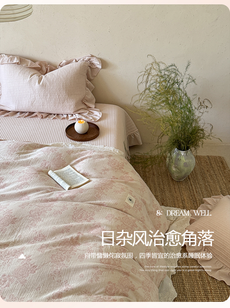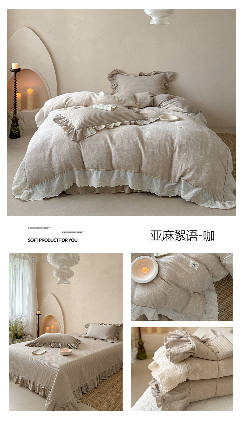 当前位置: 91家纺网 > 商品网购 > 床品套件 > 四件套 > 全棉普通四件套 > 漫调家纺 2025新款棉麻提花床盖四件套-棉麻絮语 棉麻絮语-粉