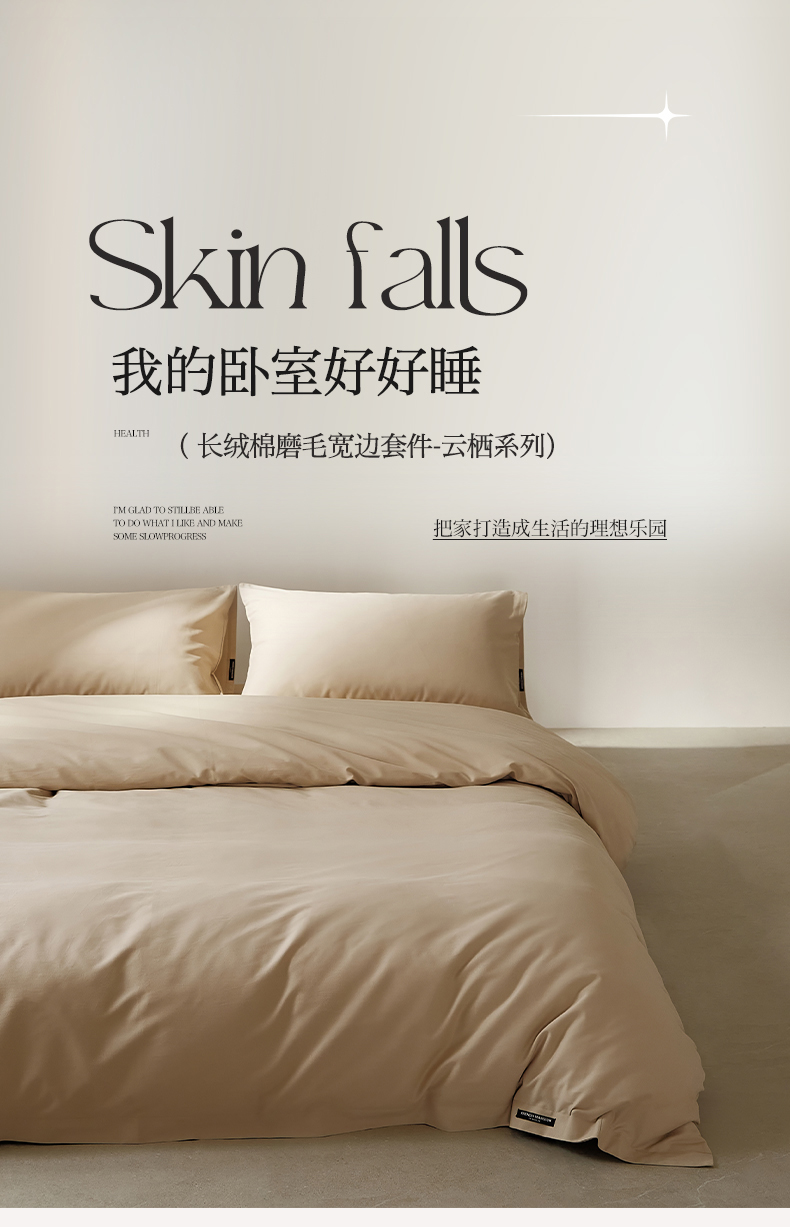 当前位置: 91家纺网 > 商品网购 > 床品套件 > 四件套 > 全棉活性四件套 > EH家居 2025新款100S长绒棉小宽边磨毛四件套--云栖系列 布丁奶咖
