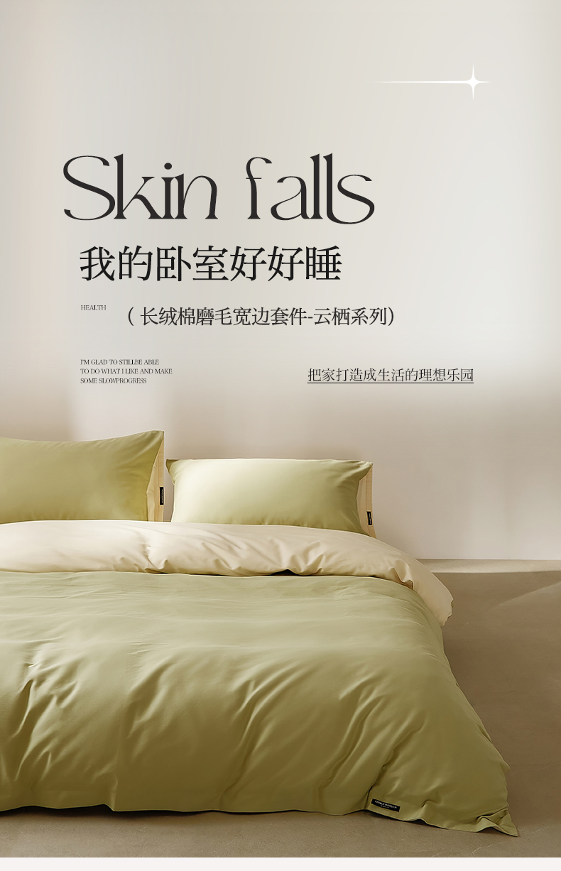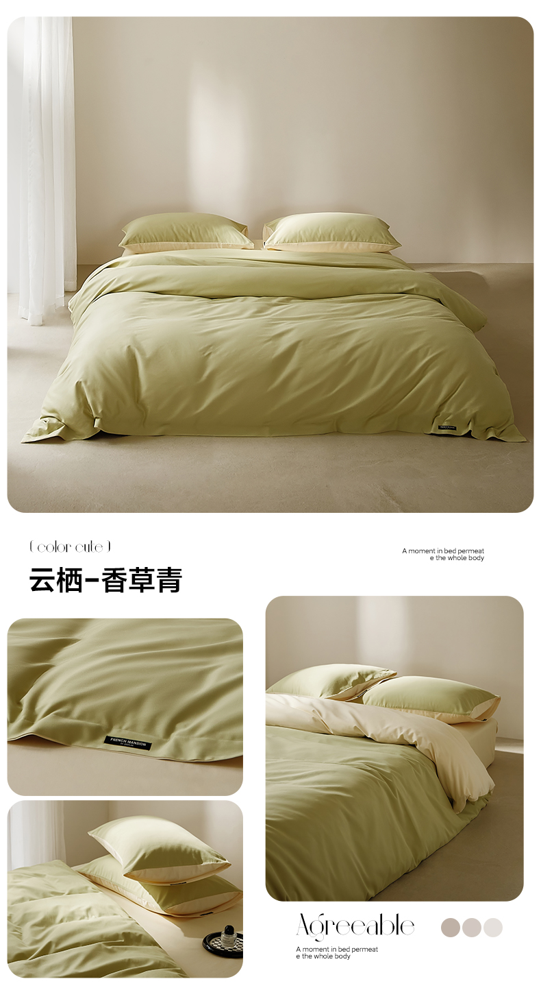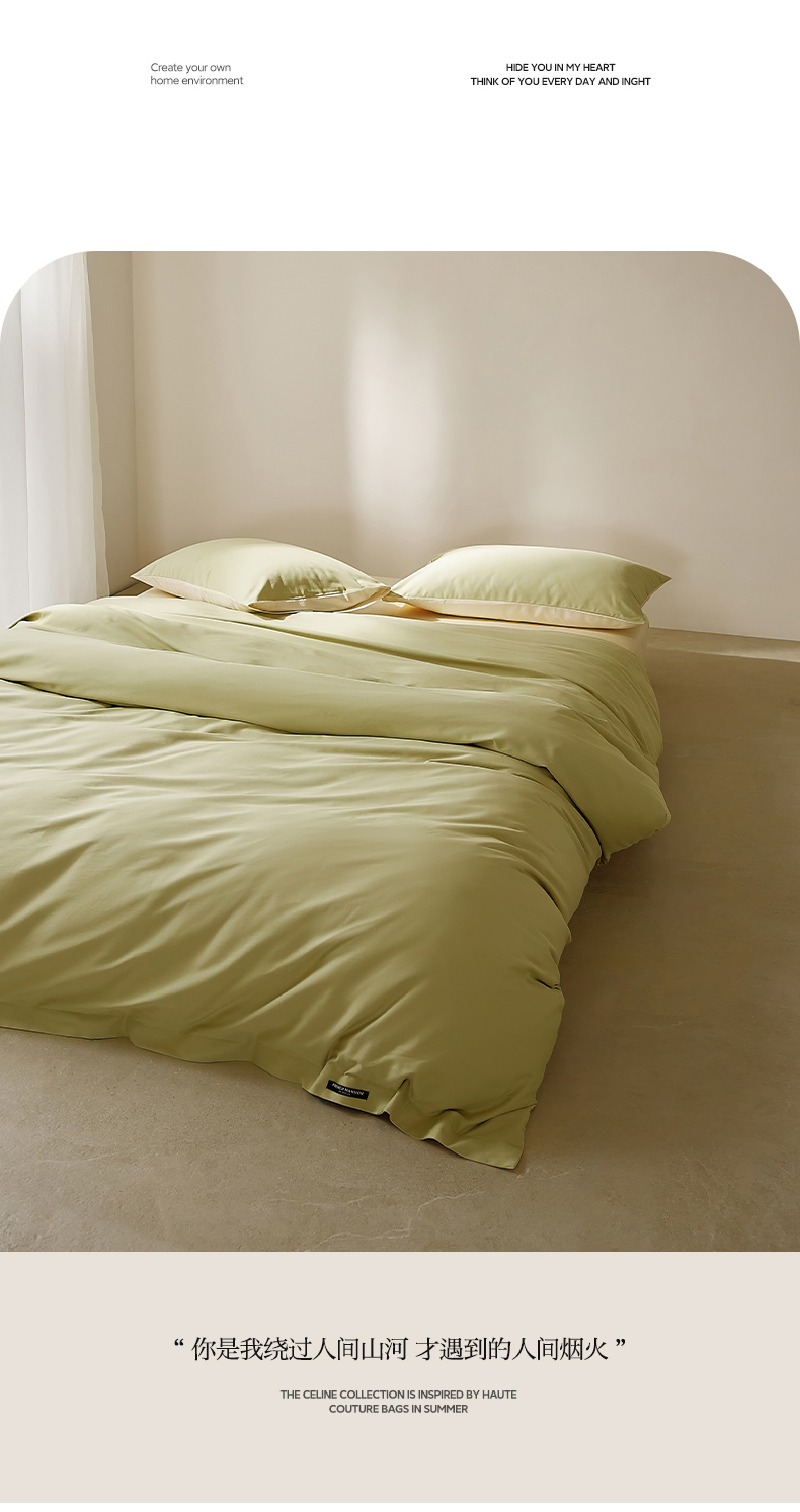 当前位置: 91家纺网 > 商品网购 > 床品套件 > 四件套 > 全棉活性四件套 > EH家居 2025新款100S长绒棉小宽边磨毛四件套--云栖系列 香草青