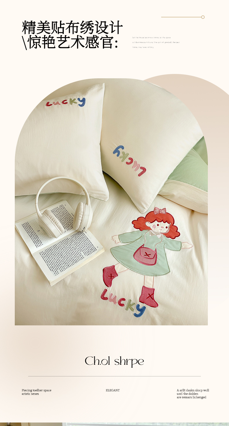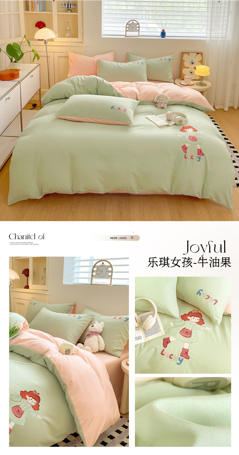 当前位置: 91家纺网 > 商品网购 > 床品套件 > 四件套 > 水洗棉四件套 > 麦空家居 2025新款抗菌水洗皱棉贴布绣四件套学生三件套-糖果梦 乐琪女孩-牛油果