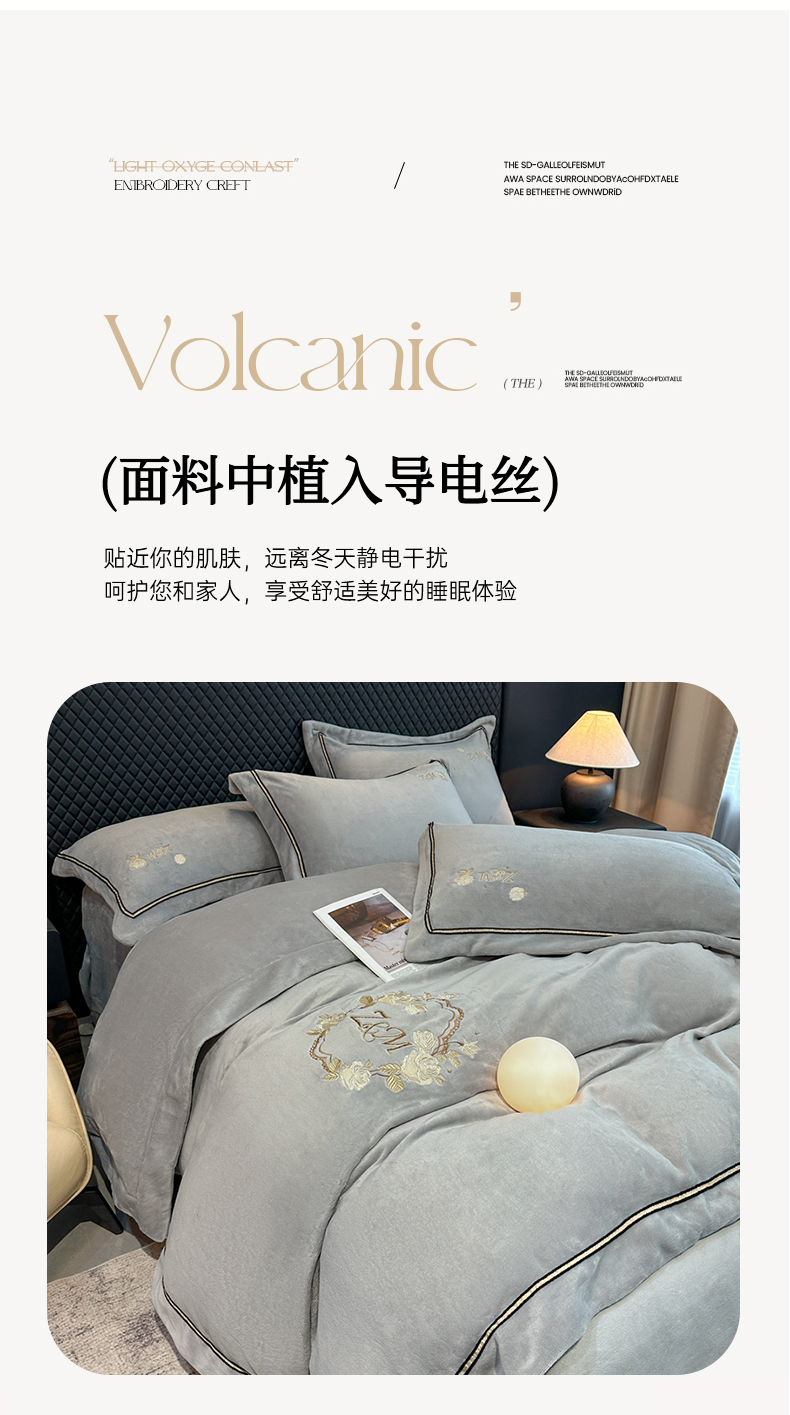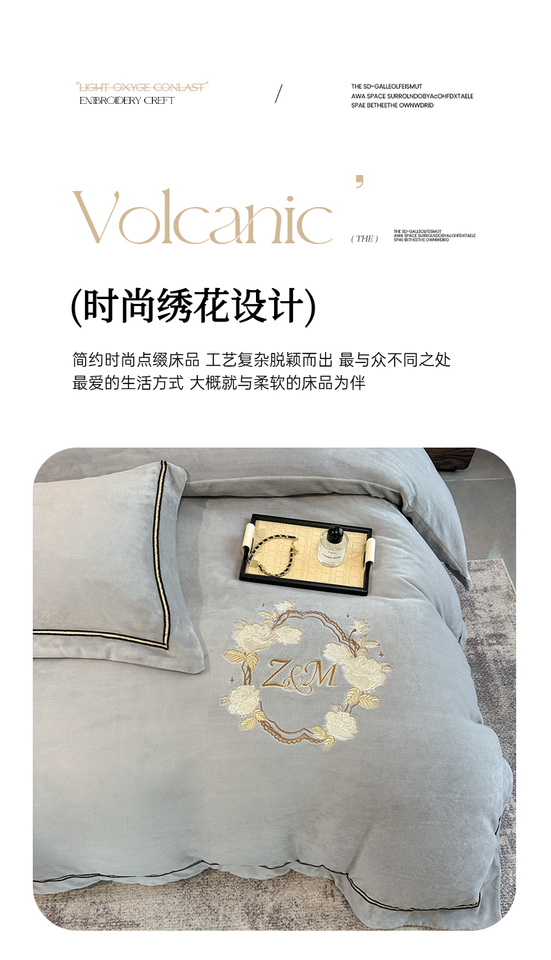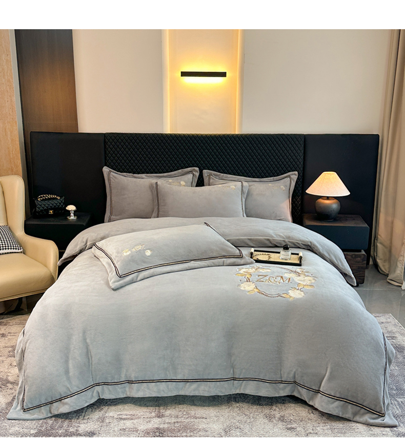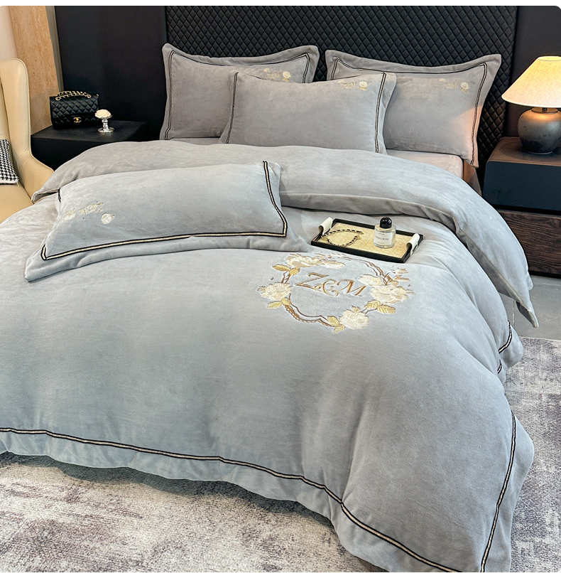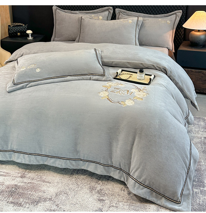 诺梵家纺 2025新款8.2斤牛奶绒刺绣四件套-布莱妮系列 布莱妮-浅灰