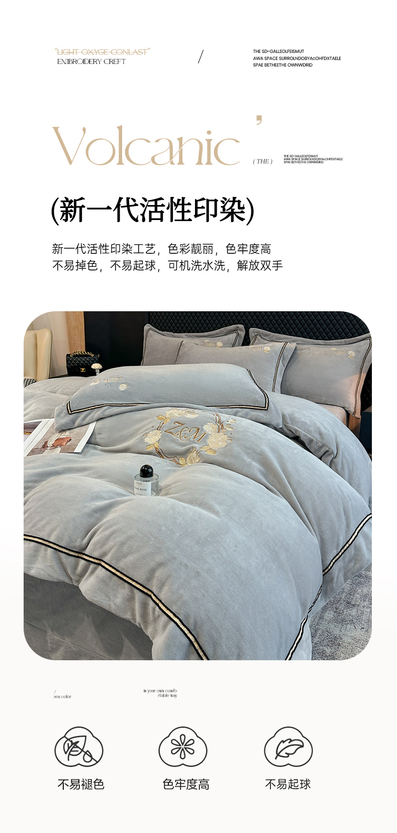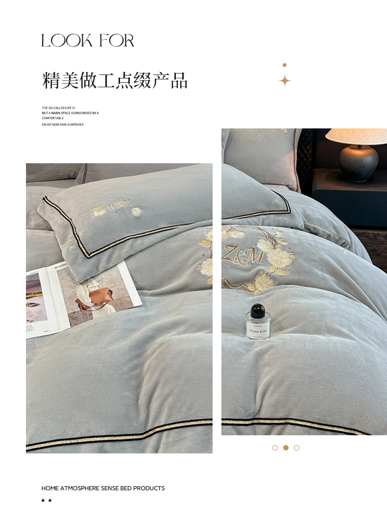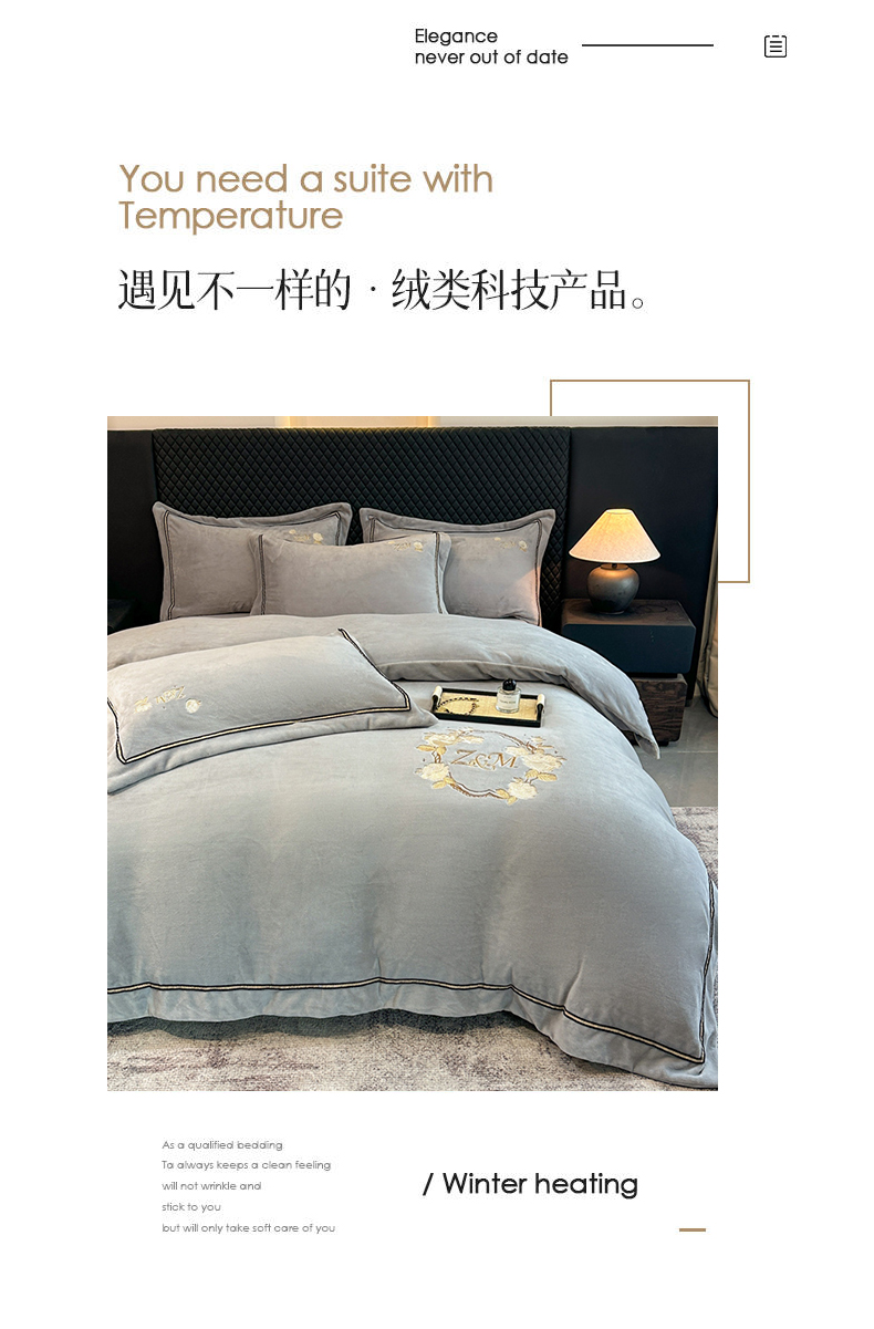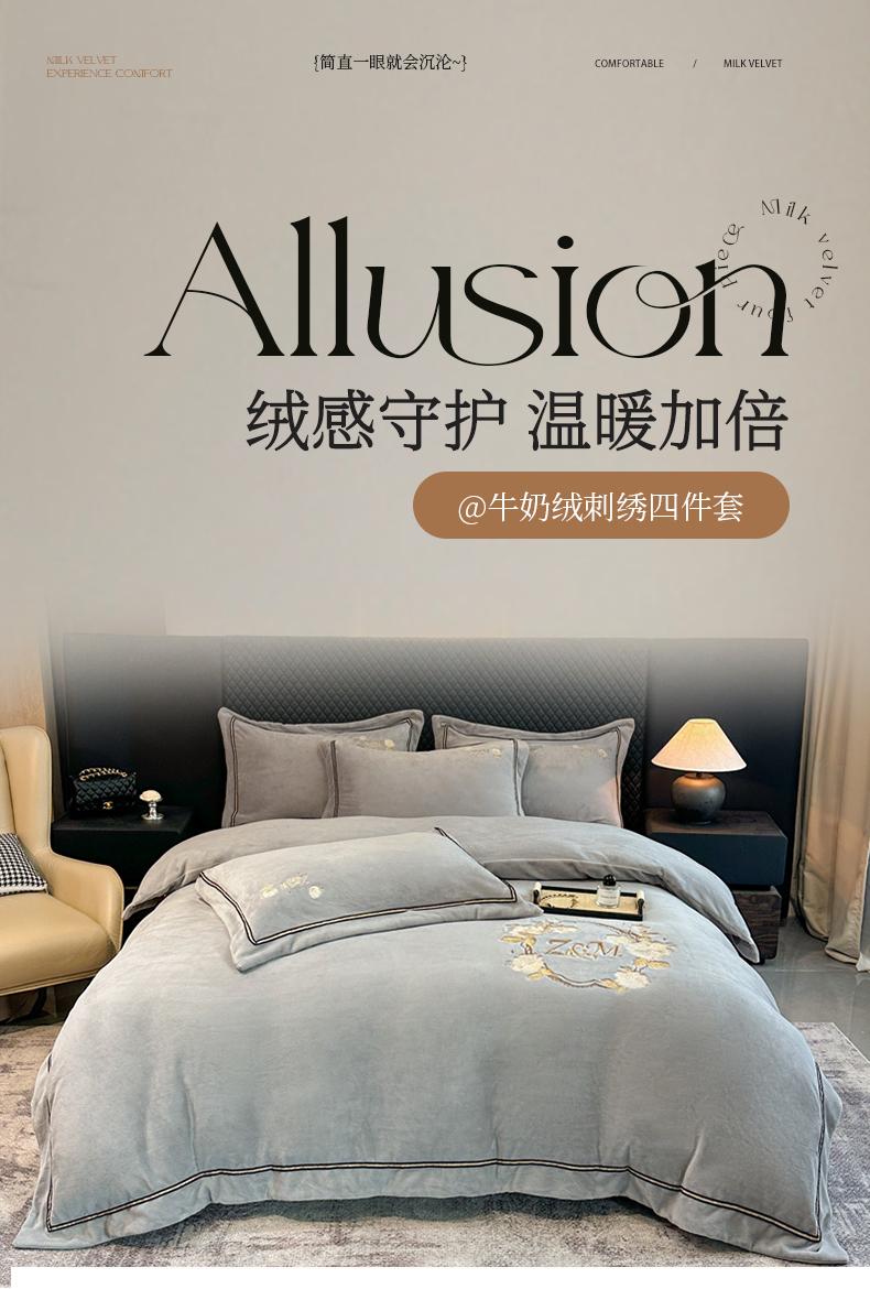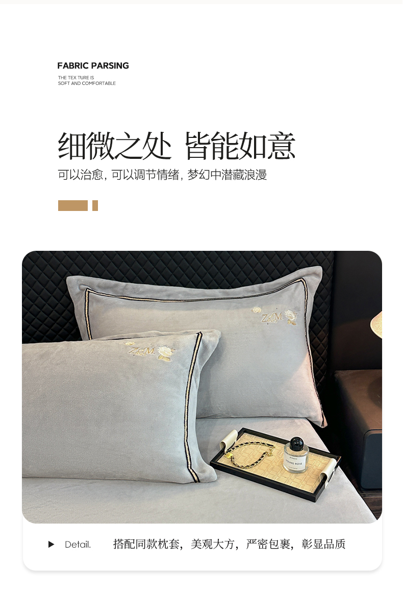 诺梵家纺 2025新款8.2斤牛奶绒刺绣四件套-布莱妮系列 布莱妮-浅灰