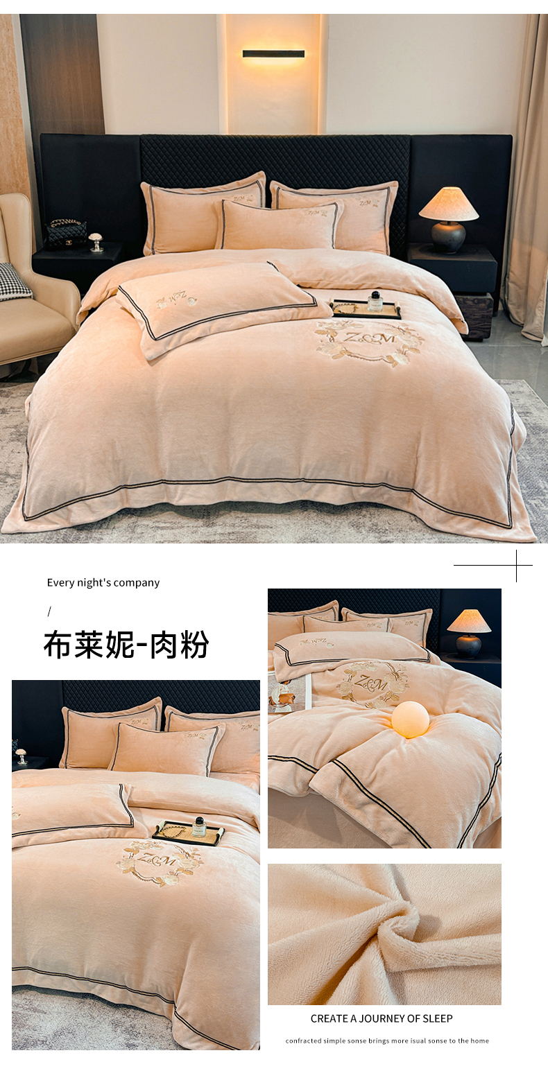 (总)诺梵家纺 2025新款牛奶绒绣花绒四件套,芳华-宝蓝,芳华-豆沙,芳华-湖兰,芳华-米白,芳华-抹茶绿,伊莉莎-米白,伊莉莎-抹茶绿