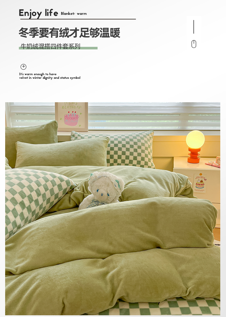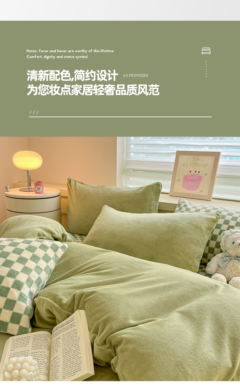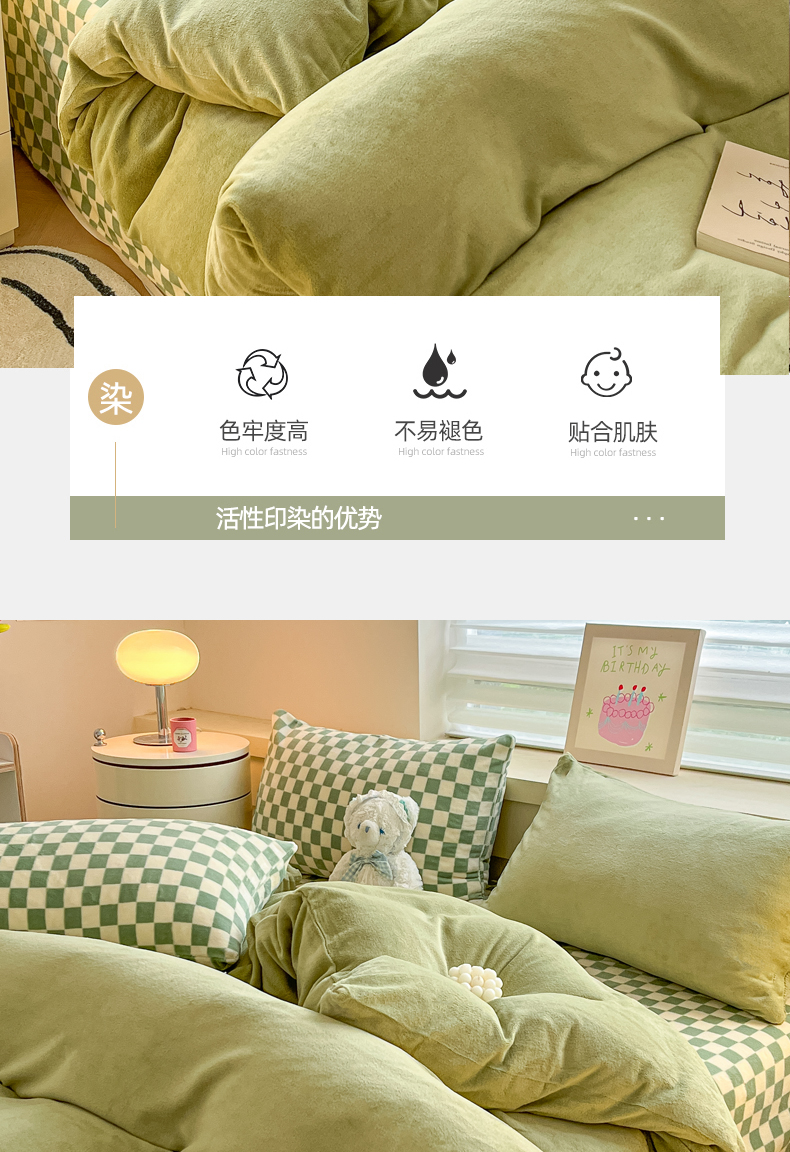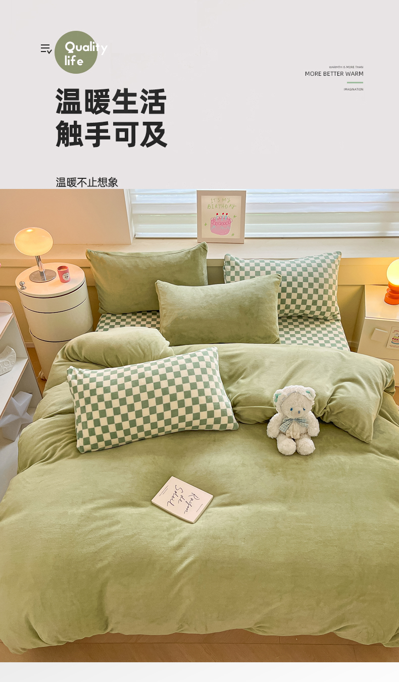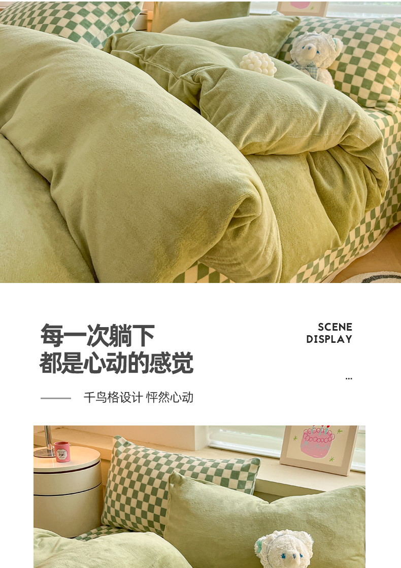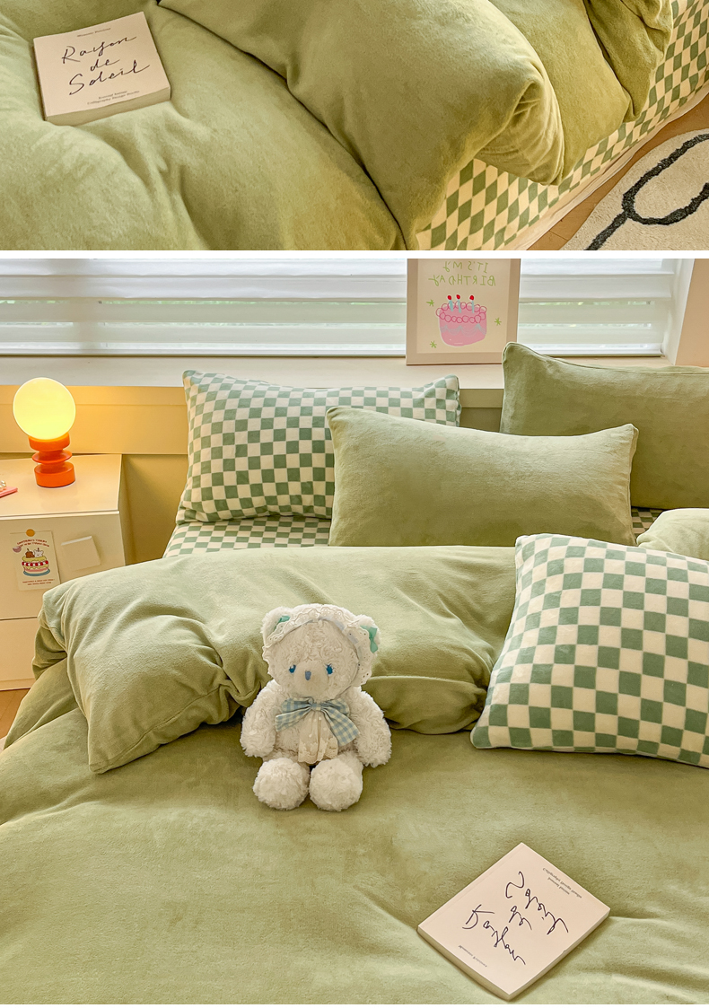 当前位置: 91家纺网 > 商品网购 > 床品套件 > 四件套 > 法莱绒四件套 > 三朵家纺 2025秋冬新款法莱绒混搭系列四件套 橄榄绿+绿格