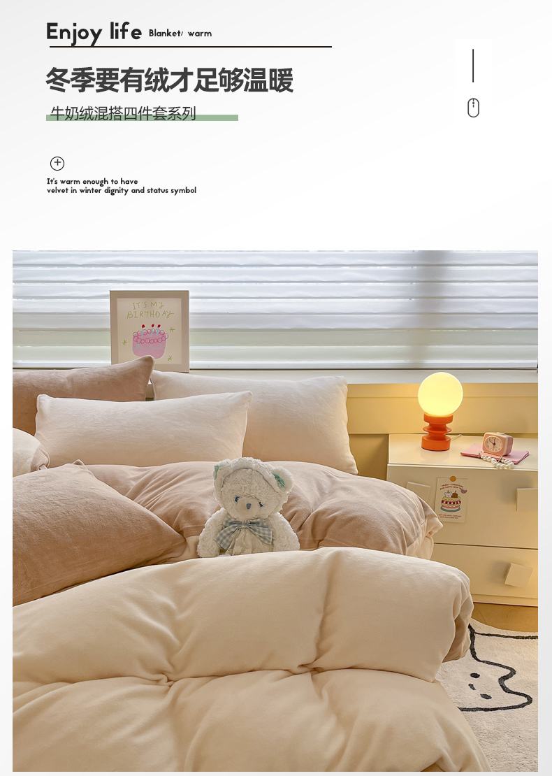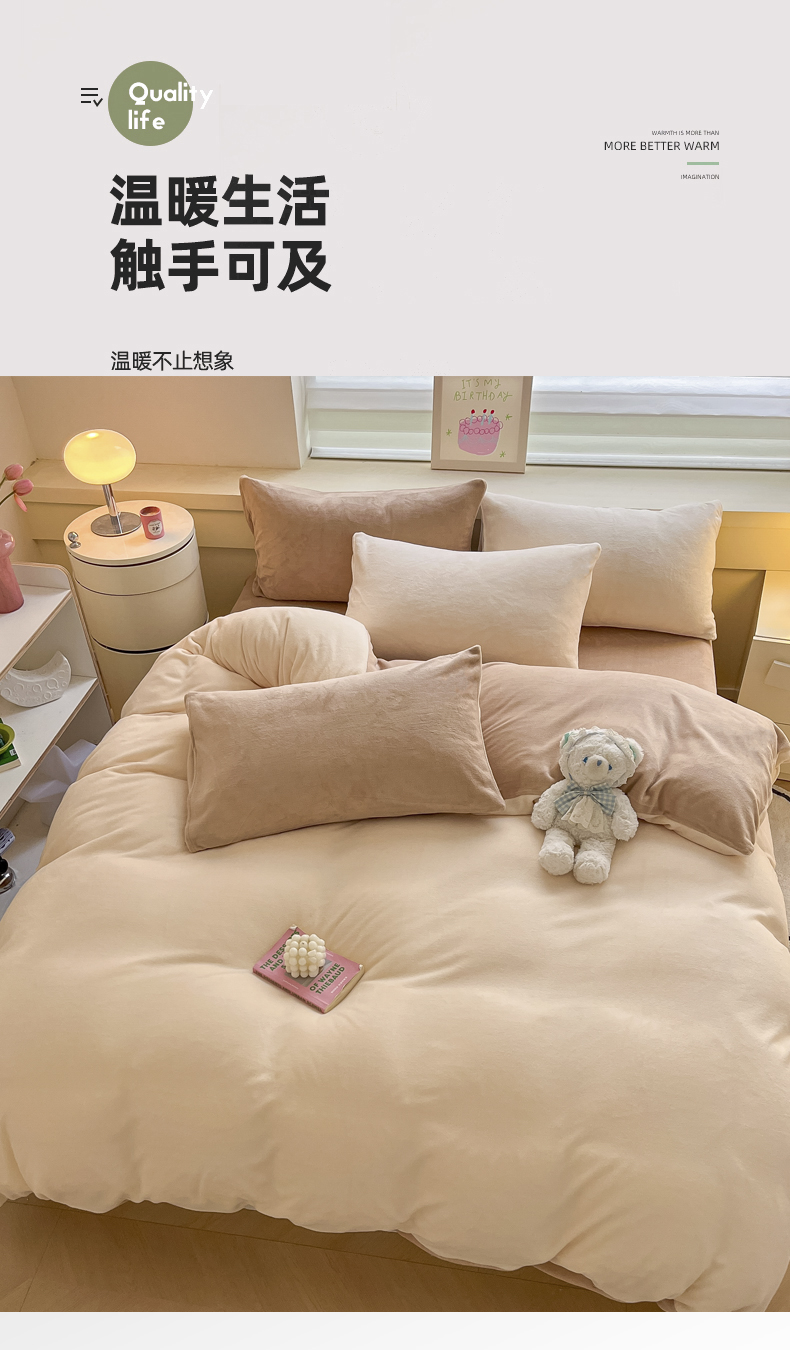 当前位置: 91家纺网 > 商品网购 > 床品套件 > 四件套 > 法莱绒四件套 > 三朵家纺 2025秋冬新款法莱绒混搭系列四件套 米色+浅咖