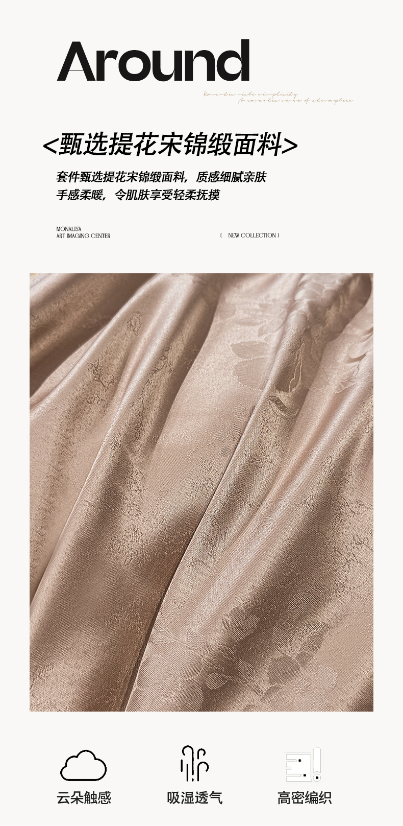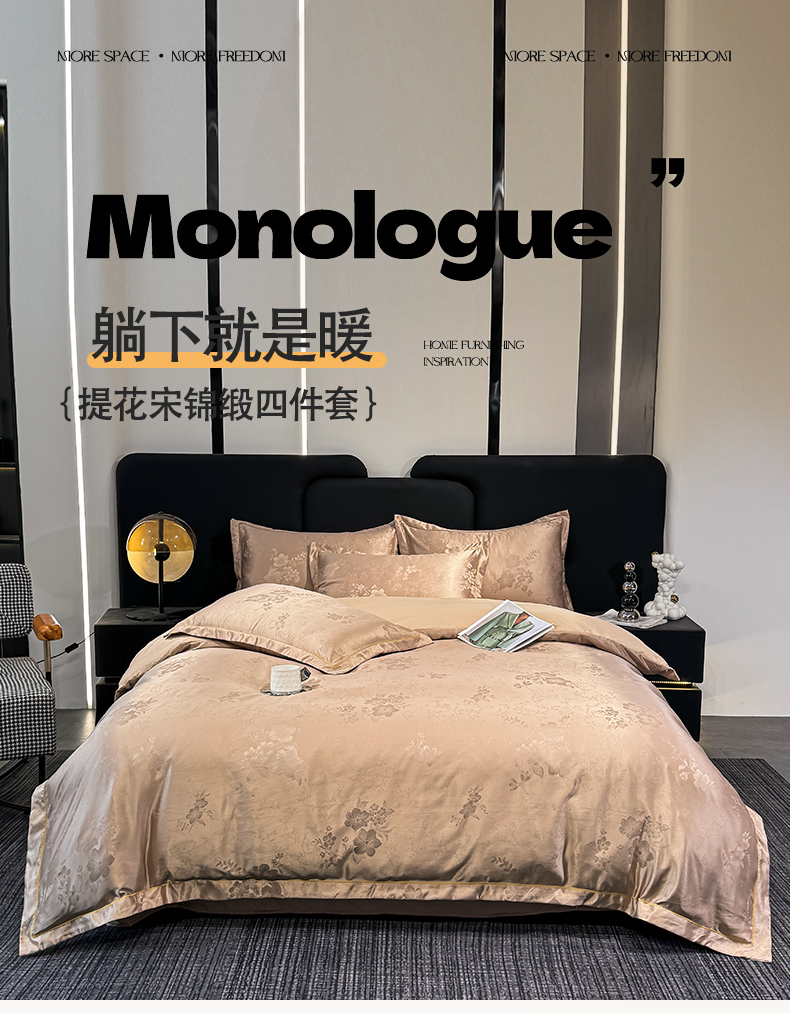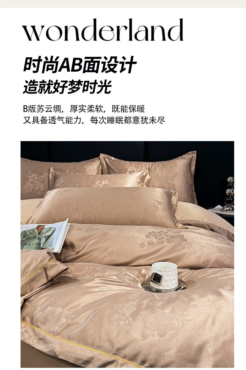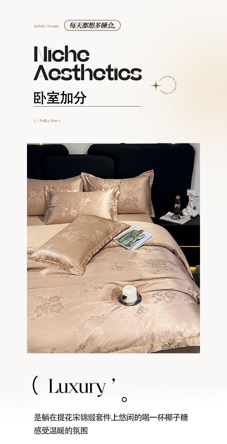商品名称:栩裕纺织 2025新款提花宋锦缎四件套 素茶咖