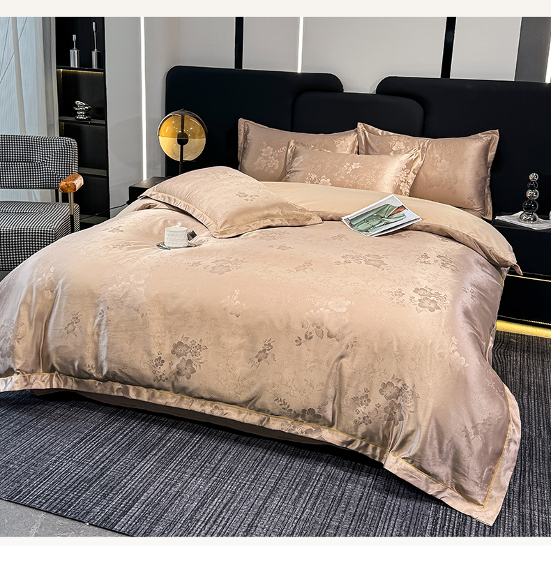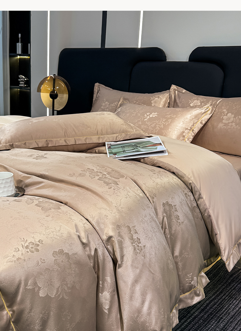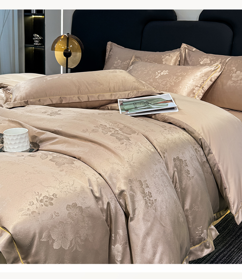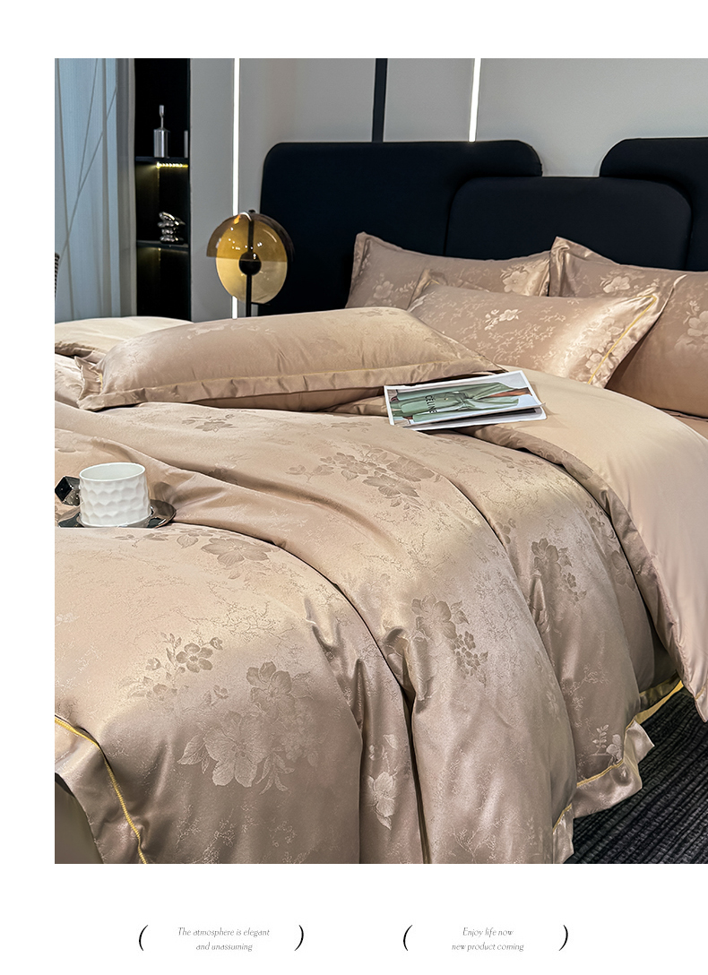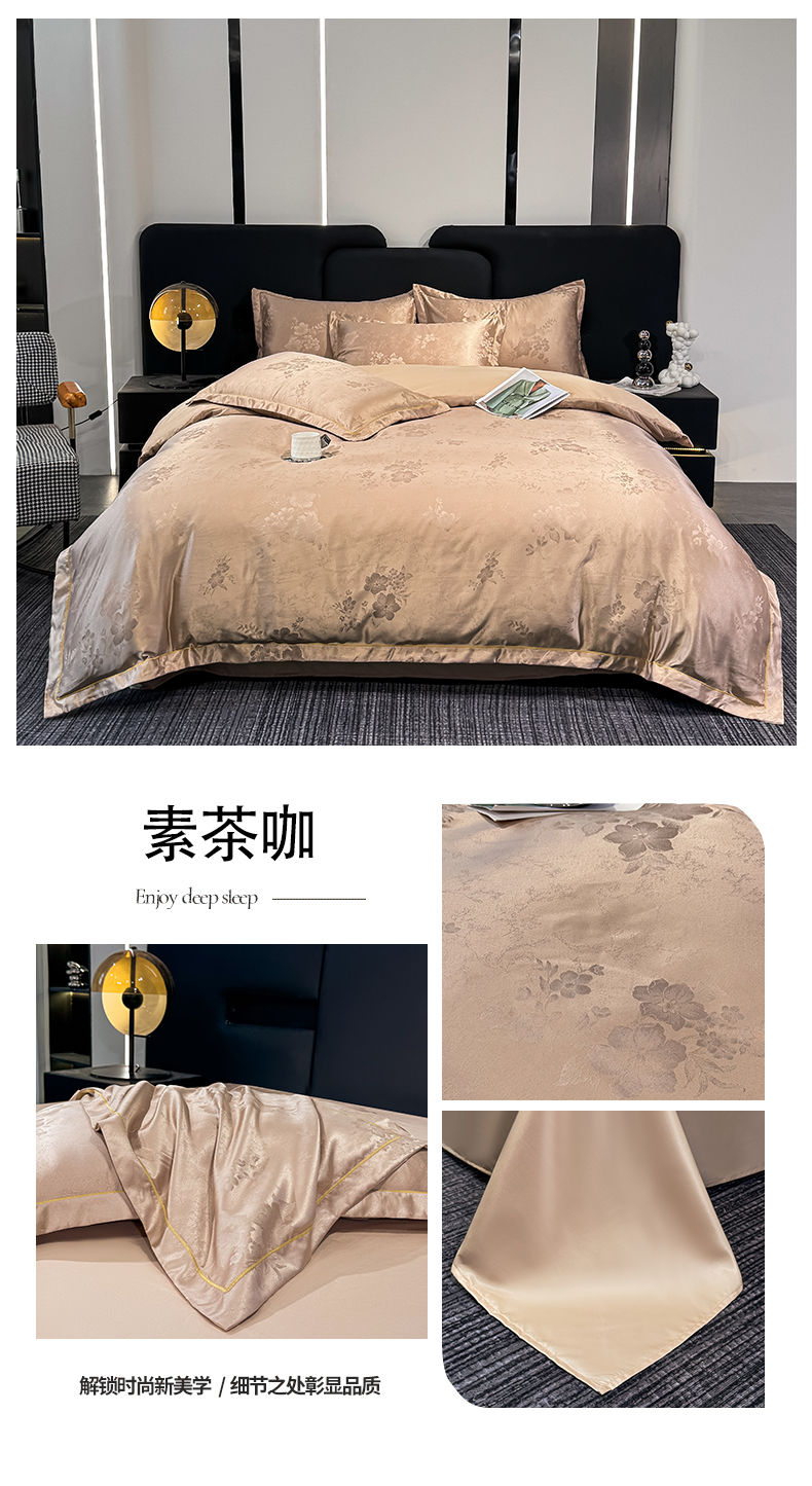 栩裕纺织 2025新款提花宋锦缎四件套 素茶咖