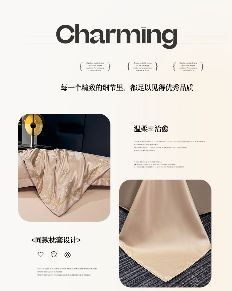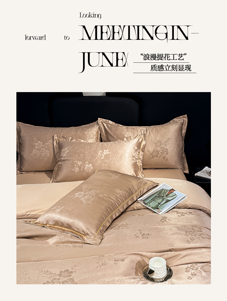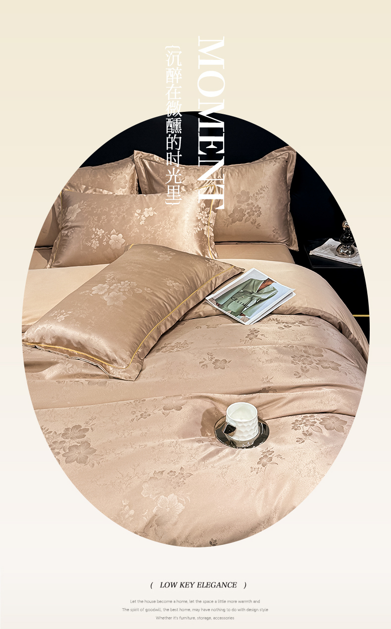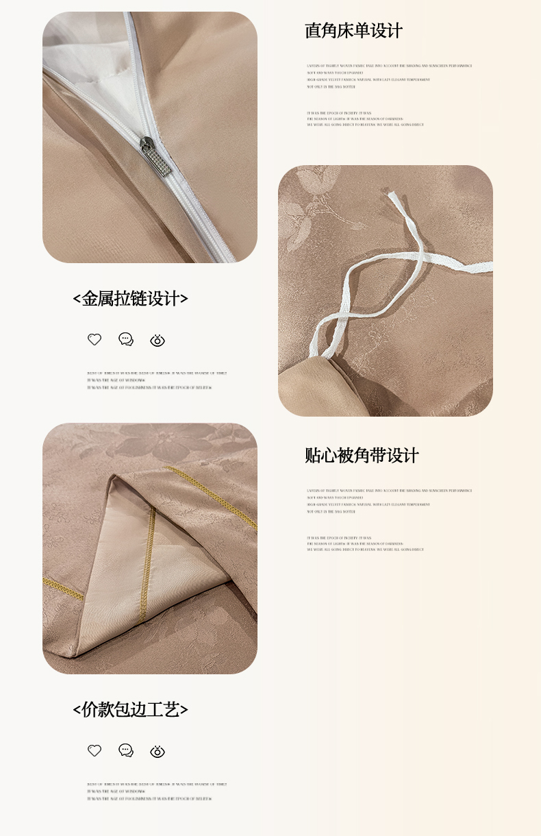 栩裕纺织 2025新款提花宋锦缎四件套 素茶咖