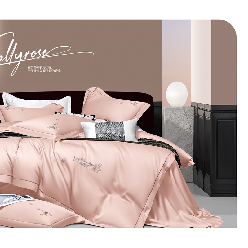 2025新款60s支贡缎长绒棉刺绣花四件套纯棉全棉100%棉轻奢风四件套 米拉-藕粉玉