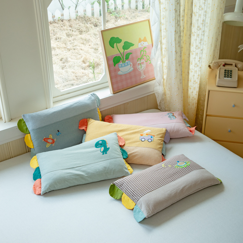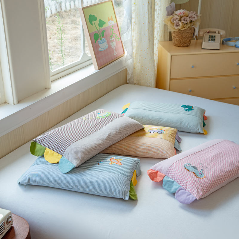 (总)卡芙芯类馆 2025新款全棉水洗棉贴布绣卡通枕芯枕头,组合图仅供展示不可下单,小飞船,小飞机,小海马,小火车,小恐龙