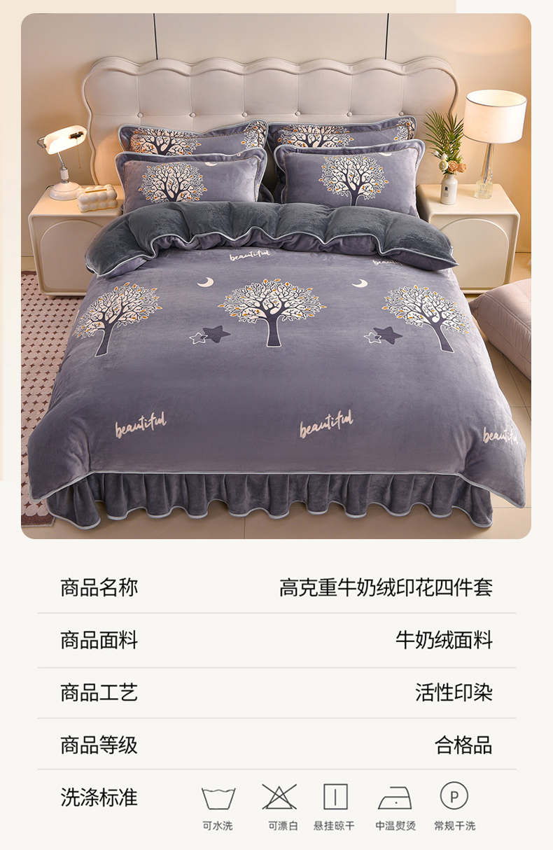 商品名称:佳一 2025新款高克重8-9斤 印花牛奶绒四件套 发财树