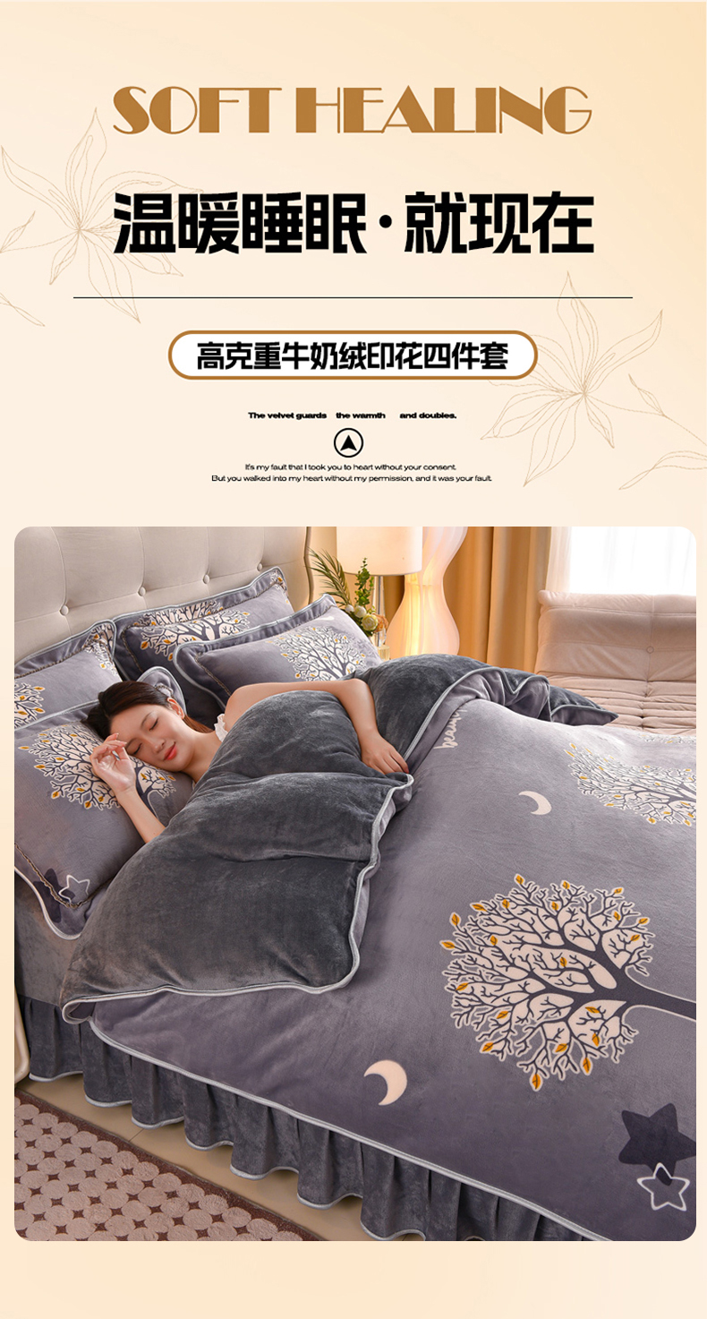 佳一 2025新款高克重8-9斤 印花牛奶绒四件套 花样情怀,花样情怀