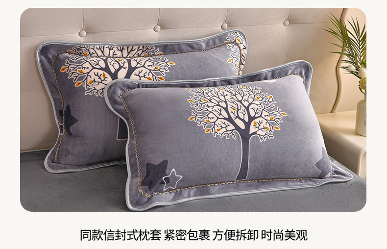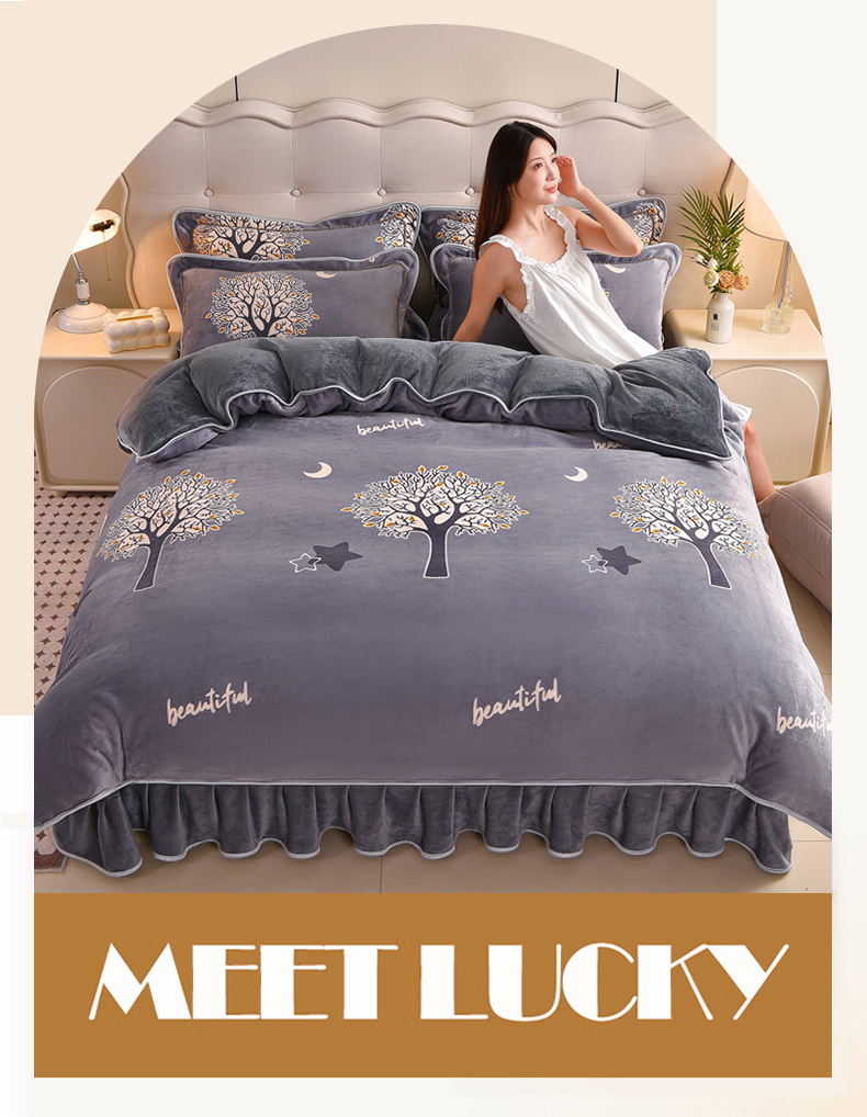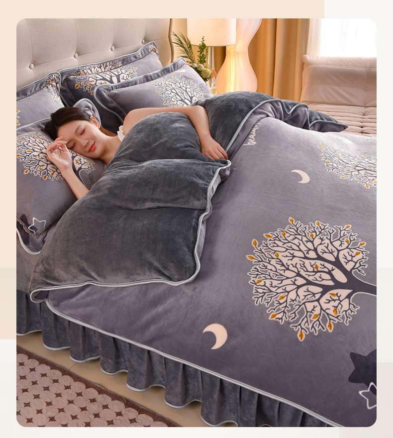 佳一 2025新款高克重8-9斤 印花牛奶绒四件套 发财树