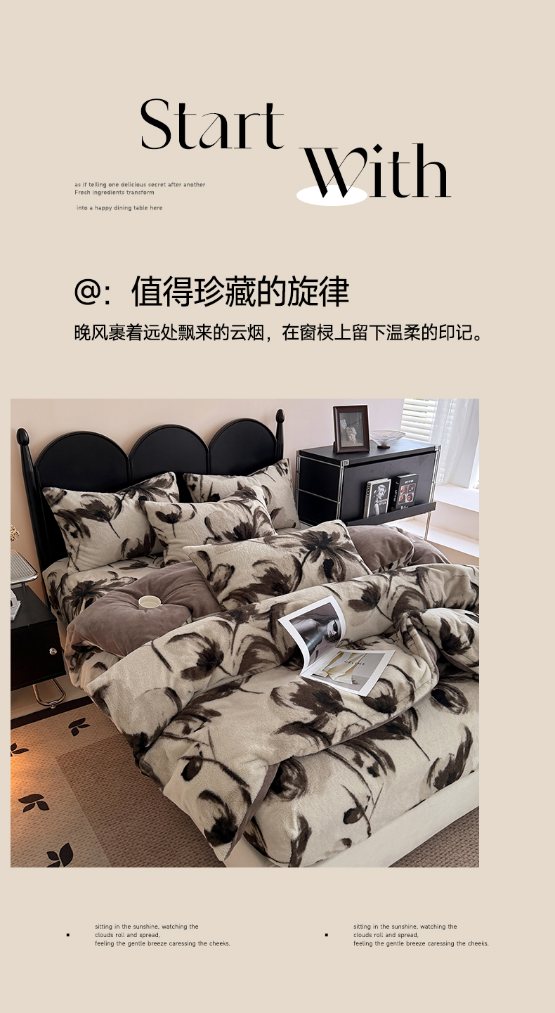 (总)慕梵家居 2025新款亲肤舒适兔绒床笠款四件套,暗夜花颂,花间絮语,墨庭芳菲-咖,墨庭芳菲-米,奢豹荣域-灰,奢豹荣域-咖,时空叠影,香绒格调,夜阑花魅