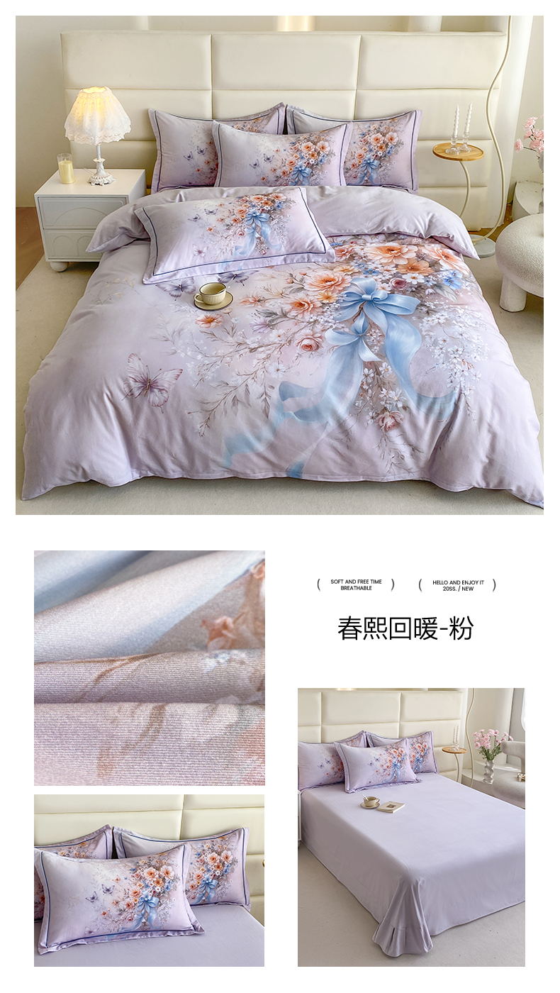 (总)眷恋家纺 2025年春夏全棉铂金棉13376数码印花四件套,爱的信仰-咖,爱心兔-粉,步步生莲-紫,春景熙熙-兰,富贵满园-兰,古色古香-兰,欢乐园-粉(有小号),满蕊花溪-绿,梦幻南瓜-粉,迷离夜色-粉,蘑菇街-米(有小号),墨雨云间-绿,普罗旺斯-紫,清醉-兰,神秘雨林-驼,时光笔墨-兰,水墨青花-兰,水中月-兰,水中月-紫,婉如初见-粉,万象更新-咖,维多利亚-兰,夏恋-粉,雪域森林-兰,音乐兔-粉(有小号),圆梦青春-兰(有小号),约定-米,绽放序曲-粉,臻爱-粉,知否-粉