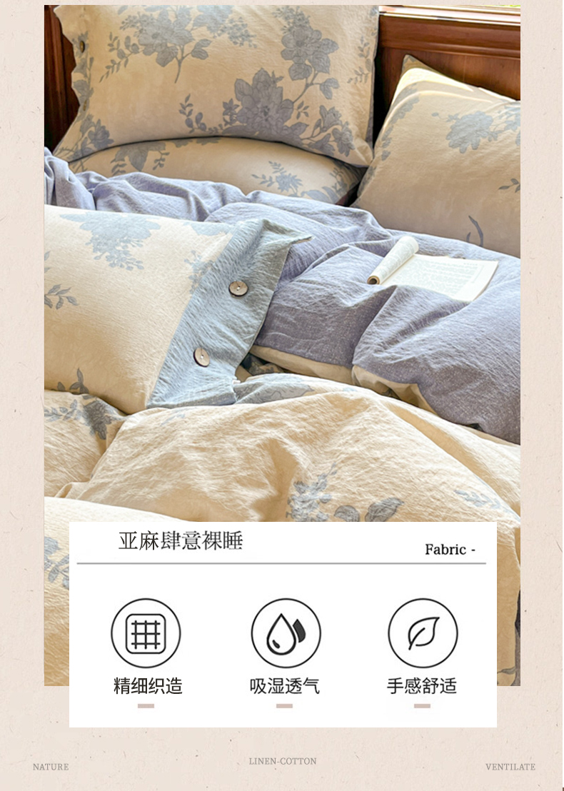 当前位置: 91家纺网 > 商品网购 > 床品套件 > 四件套 > 其它四件套 > 爱彼家纺 2025新款亲肤舒适原麻亚麻水洗棉四件套-纽扣款 兰亭序