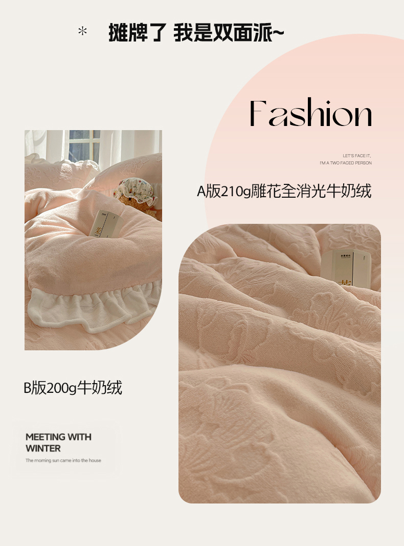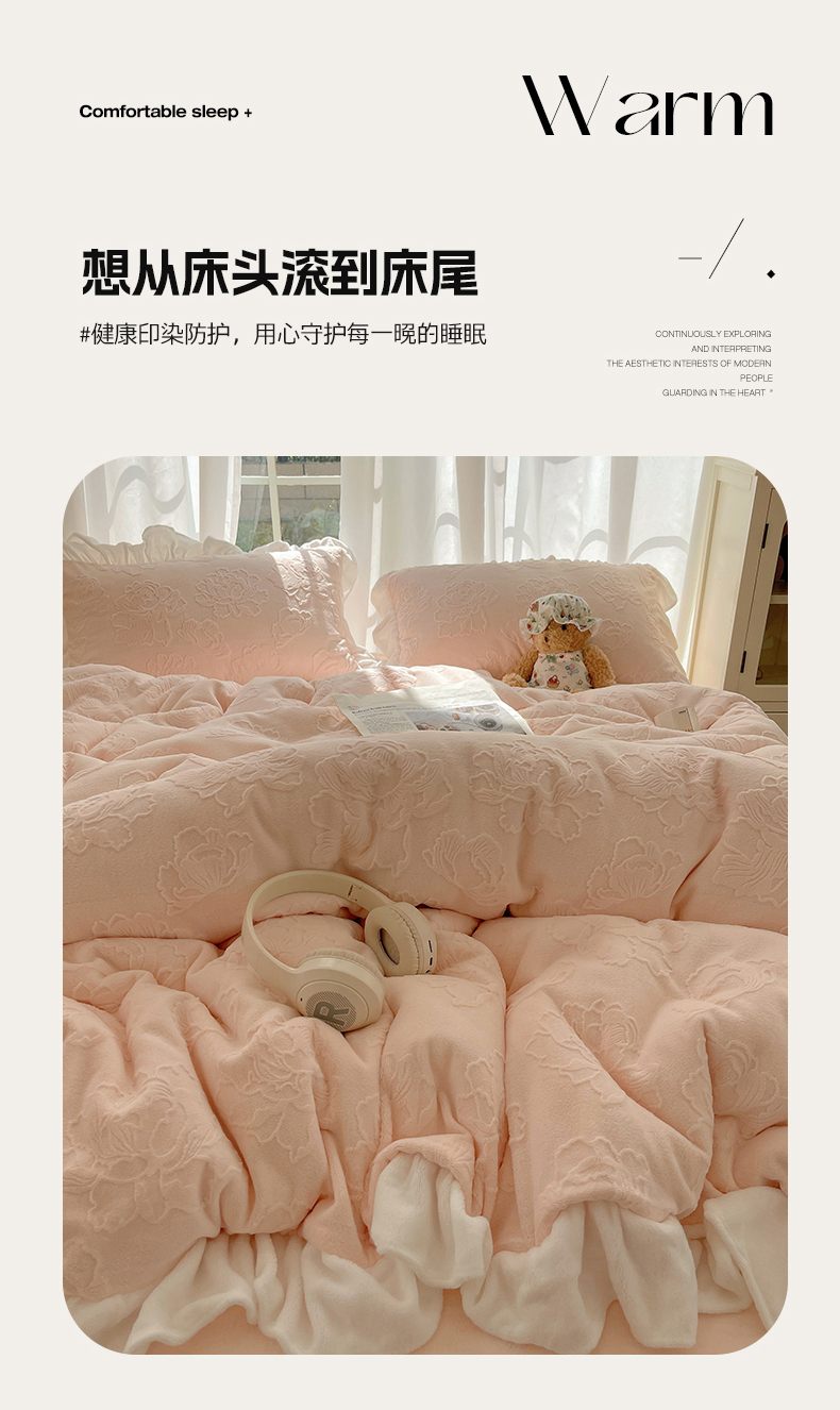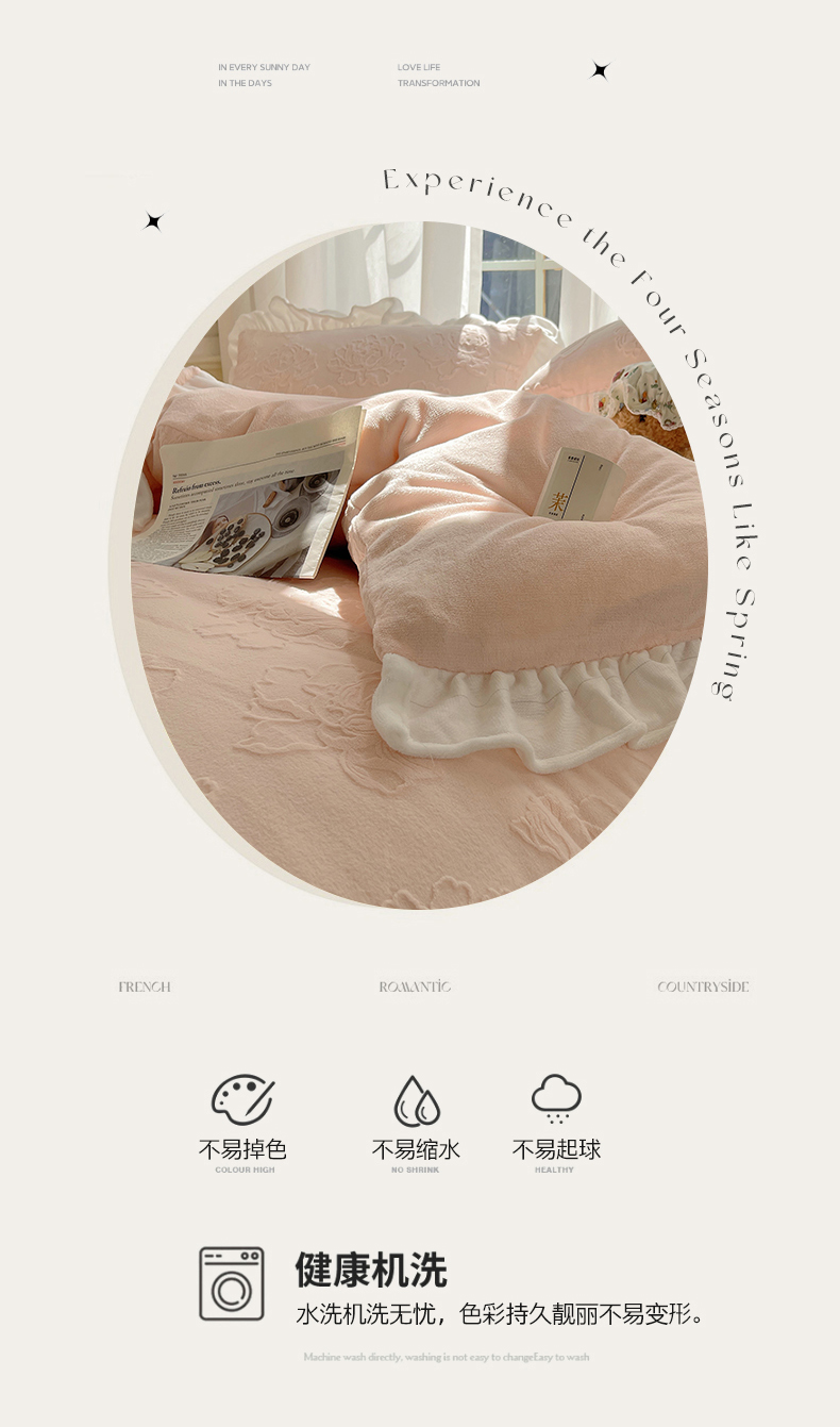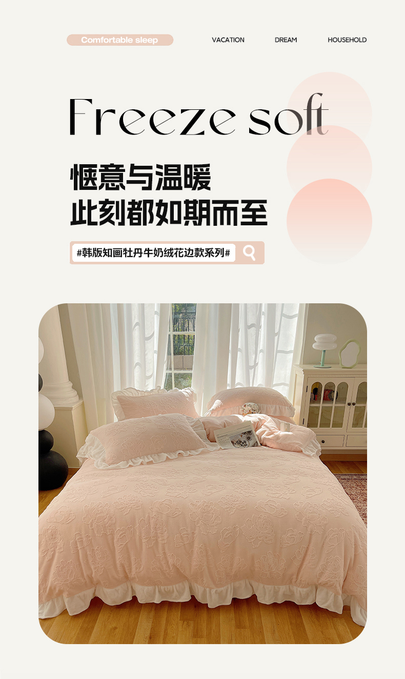 当前位置: 91家纺网 > 商品网购 > 床品套件 > 四件套 > 牛奶绒四件套 > 六巷胡同 2025新款韩版知画牡丹A类牛奶绒花边款四件套 知画牡丹-粉