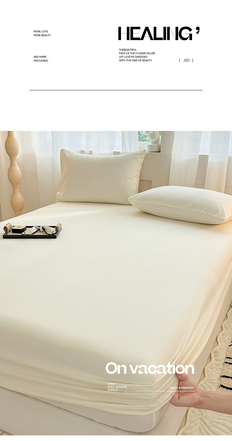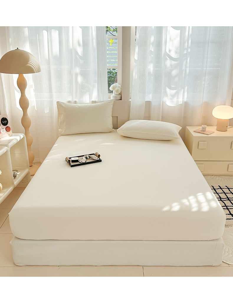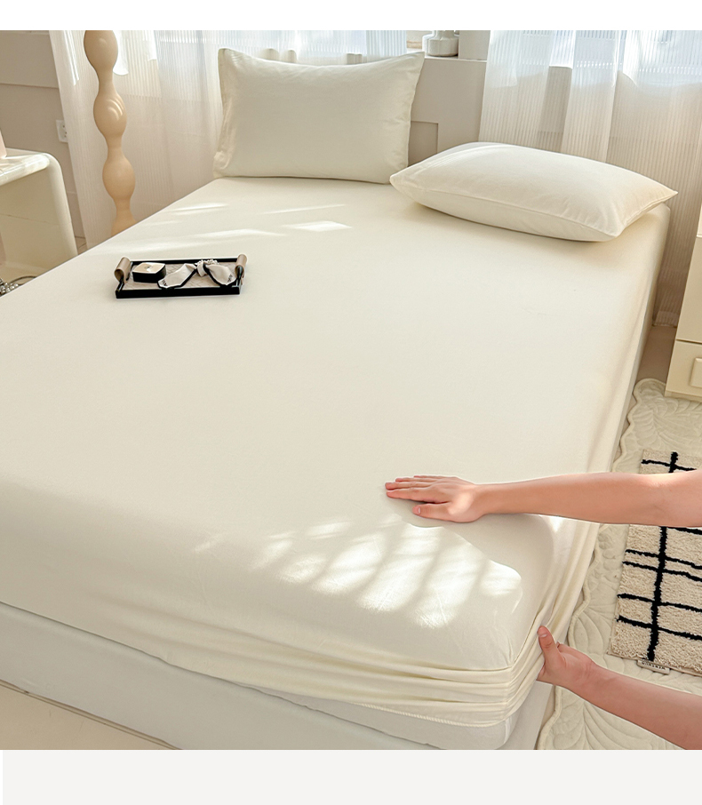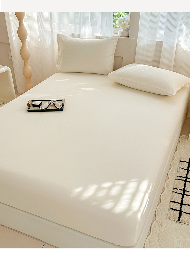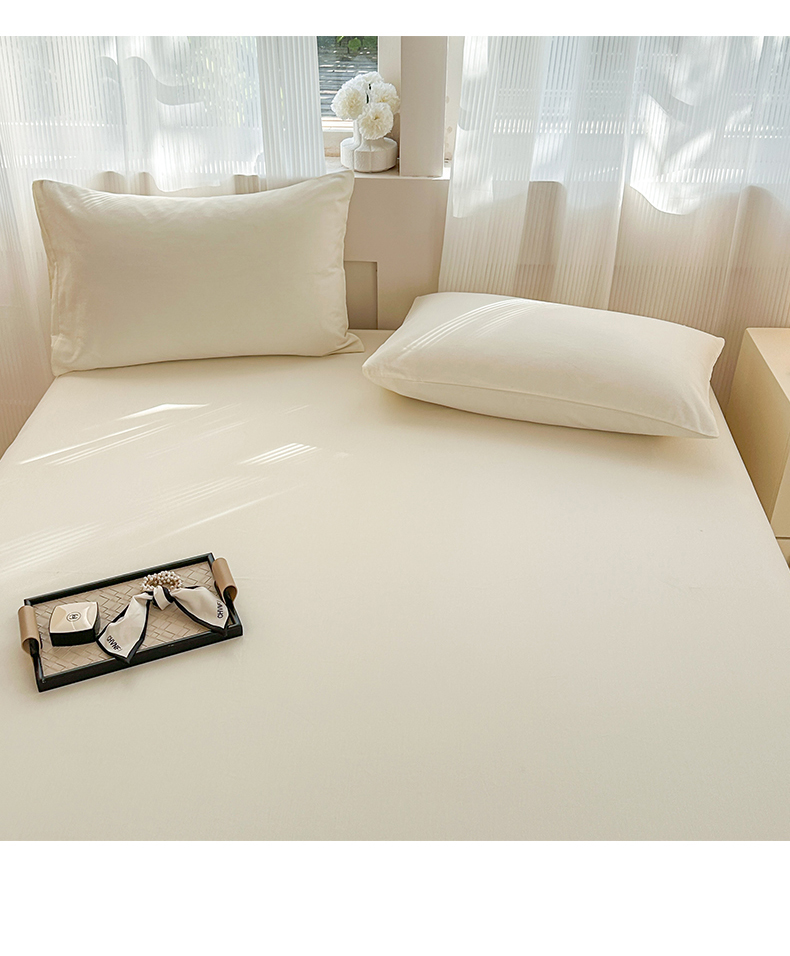 丽美人家纺 2025新款全棉纯棉磨毛单床笠 床笠单件 奶昔白