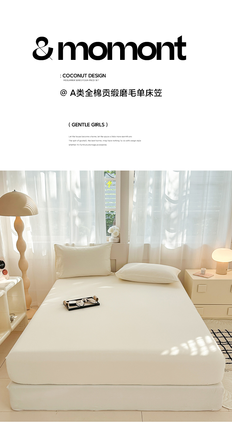 • 91家纺网 家纺一手货源 找家纺 丽美人家纺 2025新款全棉纯棉磨毛单床笠 床笠单件 奶昔白
