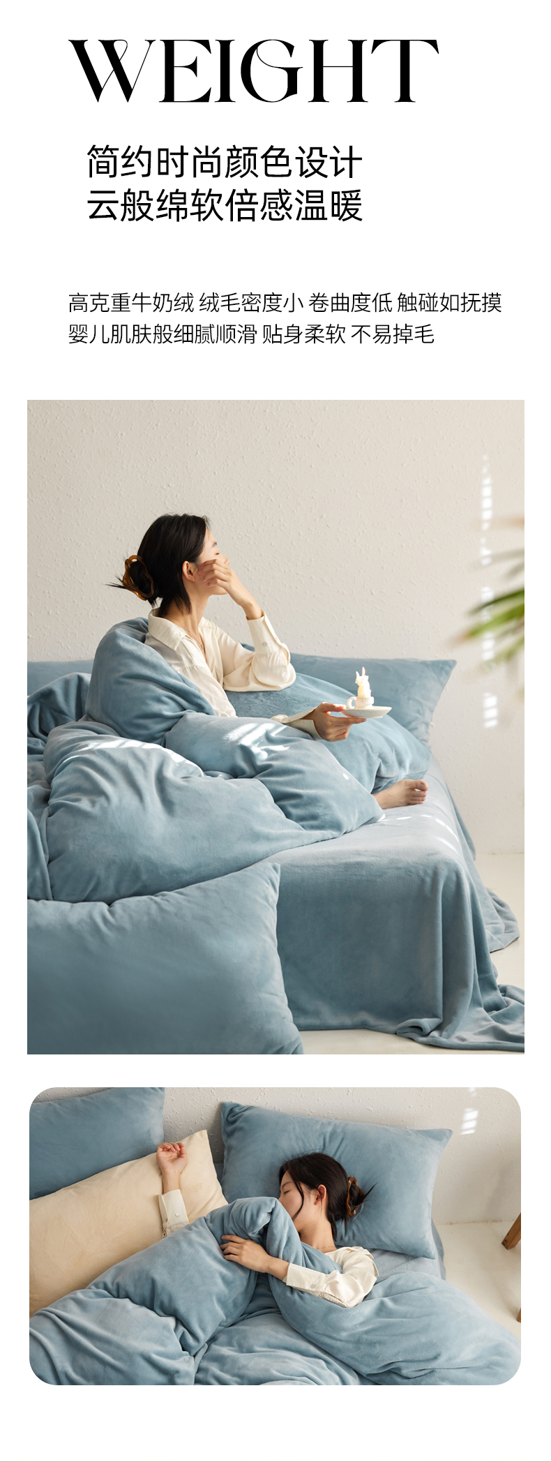 当前位置: 91家纺网 > 商品网购 > 床品套件 > 四件套 > 牛奶绒四件套 > 千朵森 2025新款高克重全消光纯色牛奶绒套件四件套 风格一 微蓝