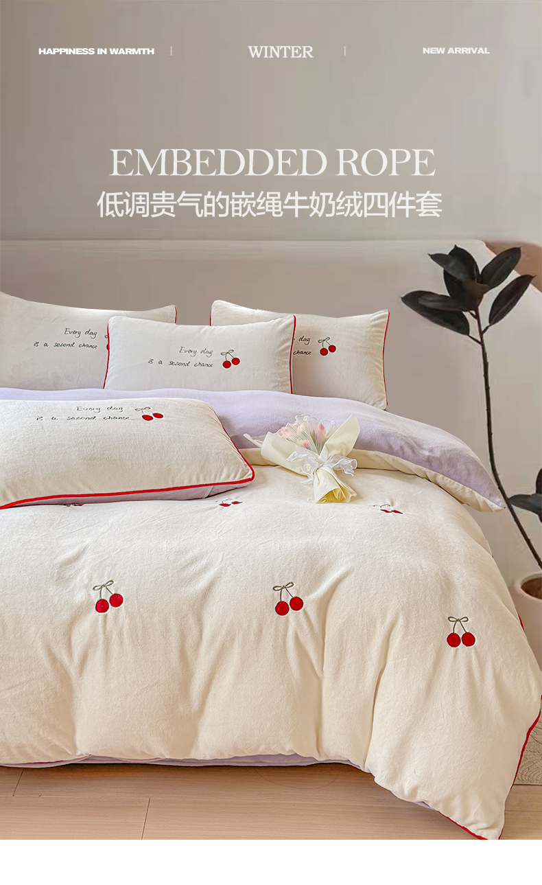 (总)KA家纺 2025新款绣花嵌绳牛奶绒四件套-元气满满系列