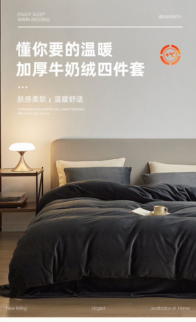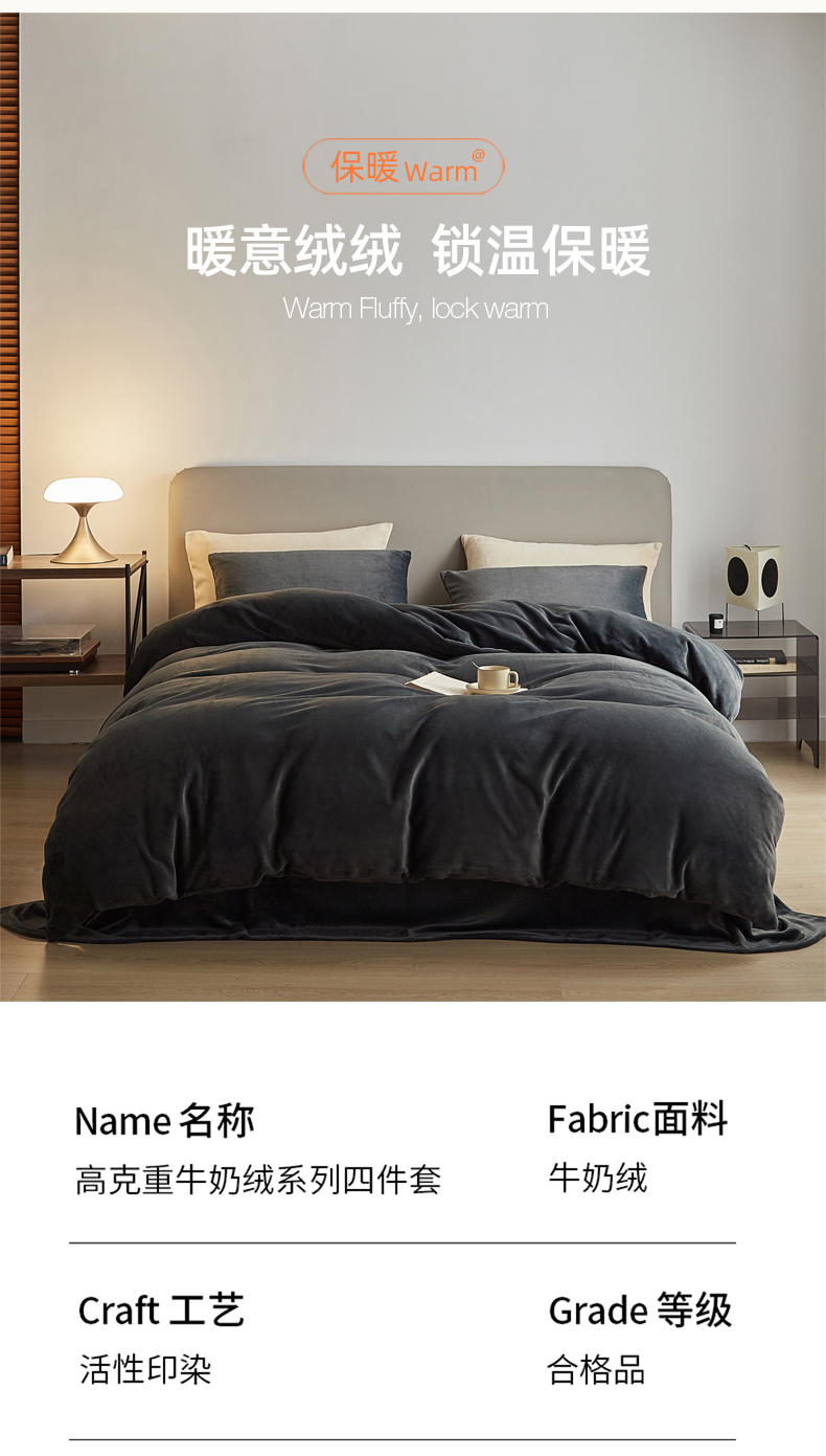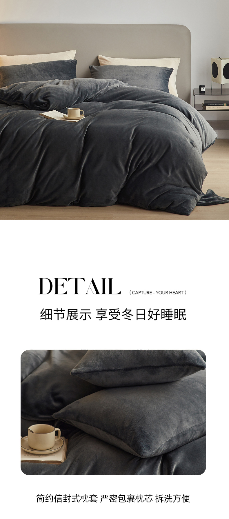 当前位置: 91家纺网 > 商品网购 > 床品套件 > 四件套 > 牛奶绒四件套 > 千朵森 2025新款高克重全消光纯色牛奶绒套件四件套 风格二 墨灰