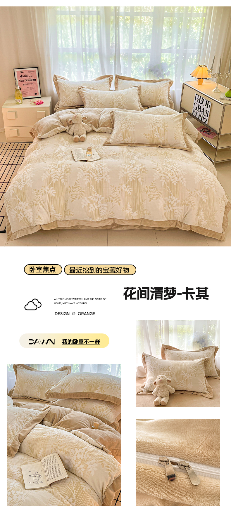 当前位置: 91家纺网 > 商品网购 > 床品套件 > 四件套 > 牛奶绒四件套 > 言一 2025新款A类全消光超柔260G立体雕花牛奶绒加厚法式宽边四件套 花间清梦-卡其