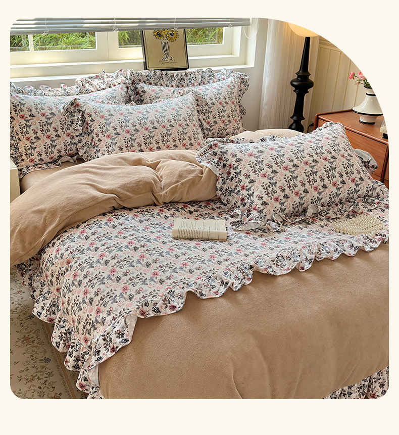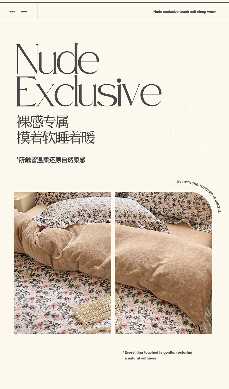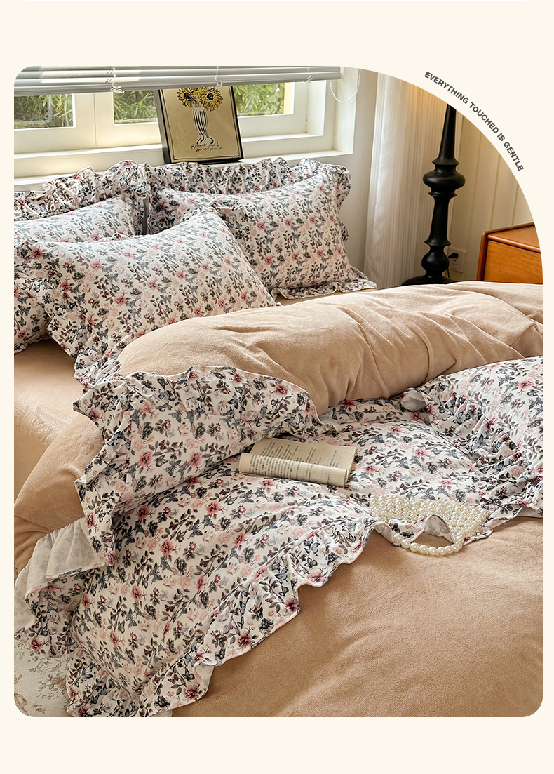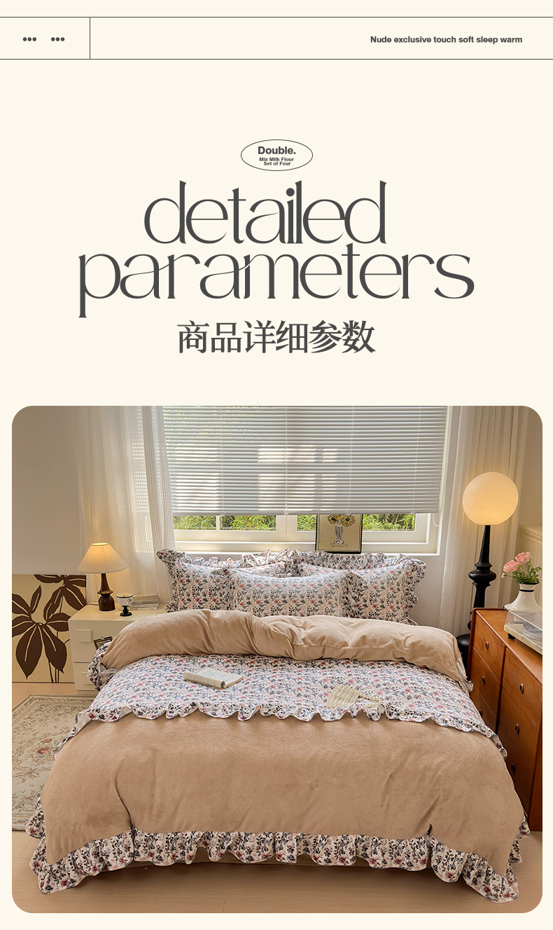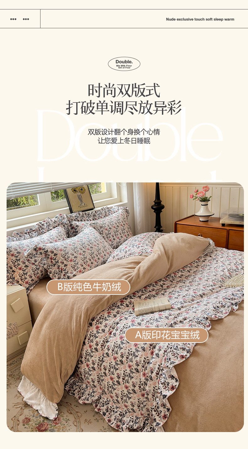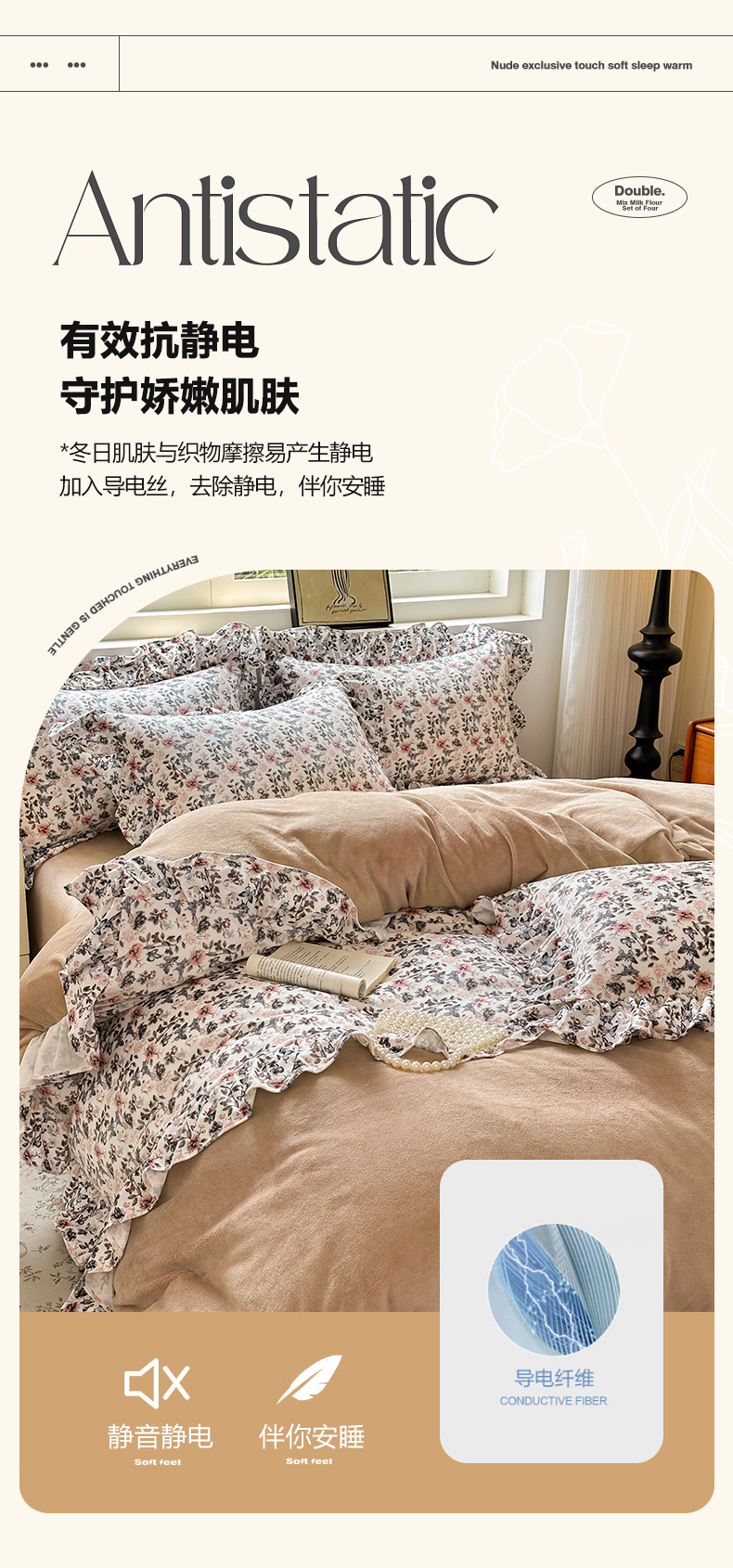 当前位置: 91家纺网 > 商品网购 > 床品套件 > 四件套 > 牛奶绒四件套 > 兰紫橙家纺 2025新款印花蝴蝶花边款牛奶绒四件套 花边款-奶油驼
