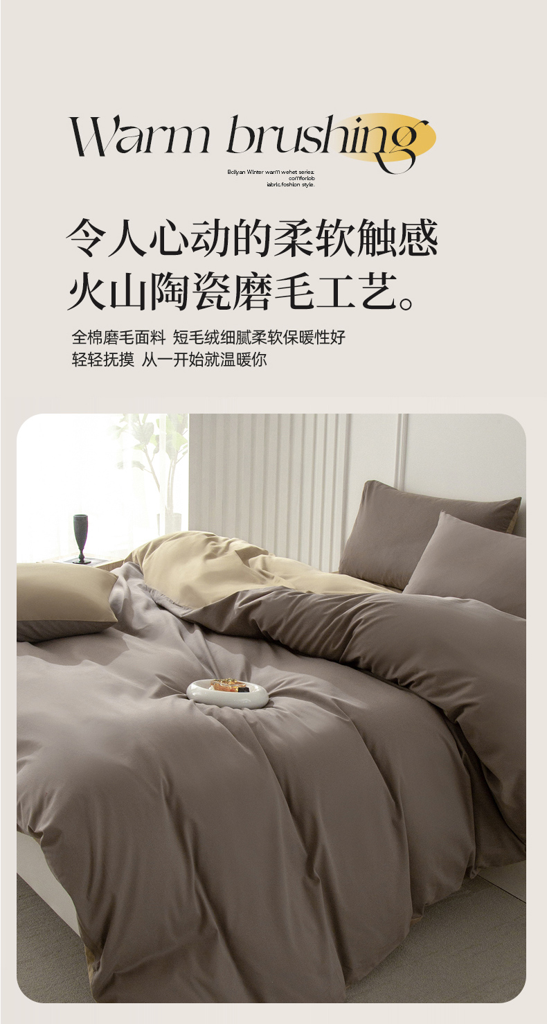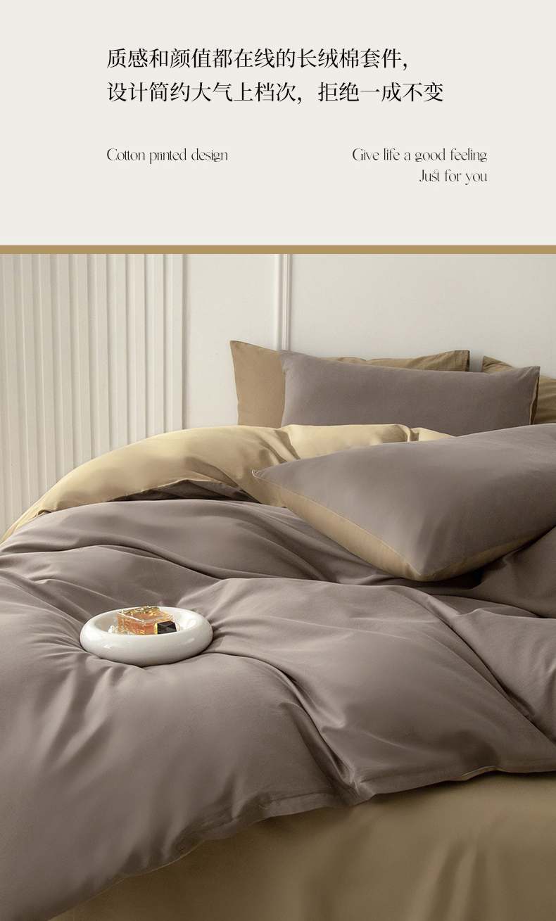当前位置: 91家纺网 > 商品网购 > 床品套件 > 四件套 > 普通磨毛四件套 > ONE TWO ONE 121 2025新款A类高支高密长绒棉双拼磨毛(小cr )撞色四件套 暗咖浅卡其