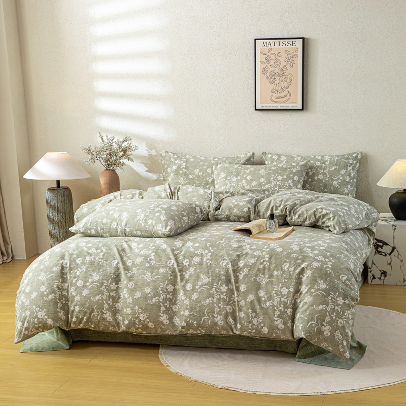 (总)七里香 2025新款牛奶绒印花刺绣四件套-繁花系列,繁花-草绿,繁花-豆沙,繁花-果绿,繁花-灰色,繁花-蓝色