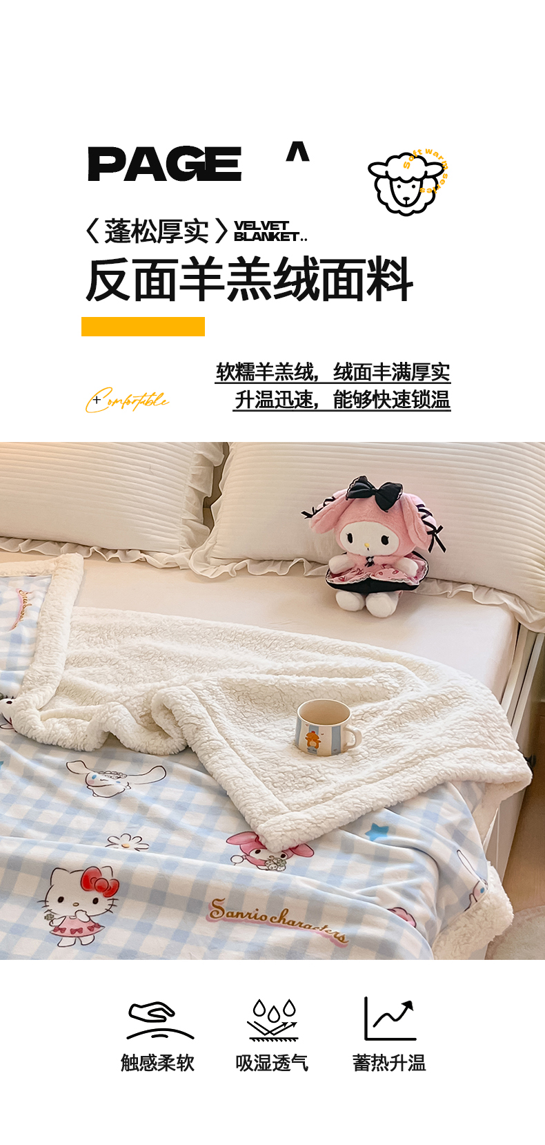 当前位置: 91家纺网 > 商品网购 > 毛毯休闲毯绒毯 > 毛毯 > 金爱家 2025新款A类三丽鸥正版授权少女可爱卡通加厚牛奶绒羊羔绒毛毯多功能四季毛毯毯子 绒毛毯-MT三丽鸥梦幻甜心