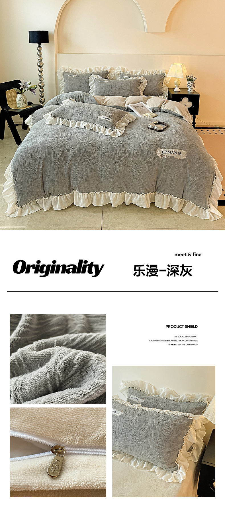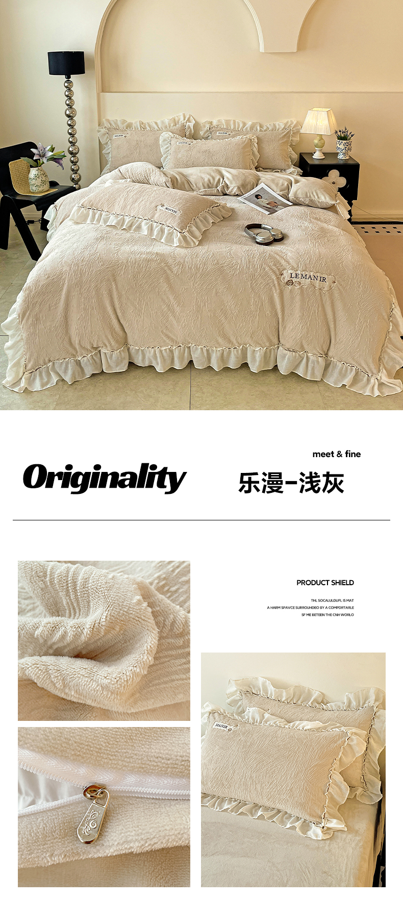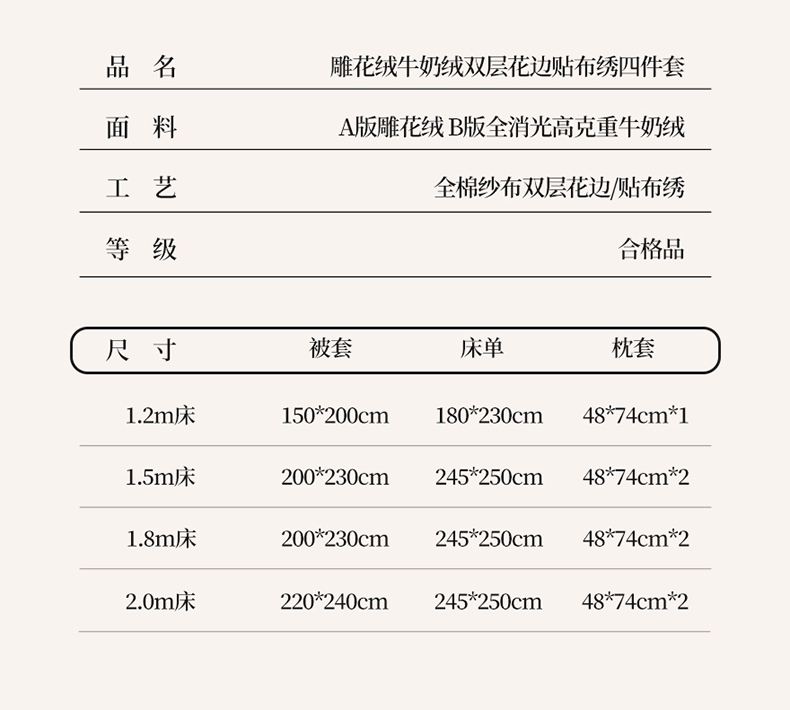 (总)十方家居 2025新款9斤加厚雕花绒全棉纱布韩版双层花边贴布绣高克重全消光牛奶绒四件套,乐漫-浅灰,乐漫-深灰,乐漫-奶昔白