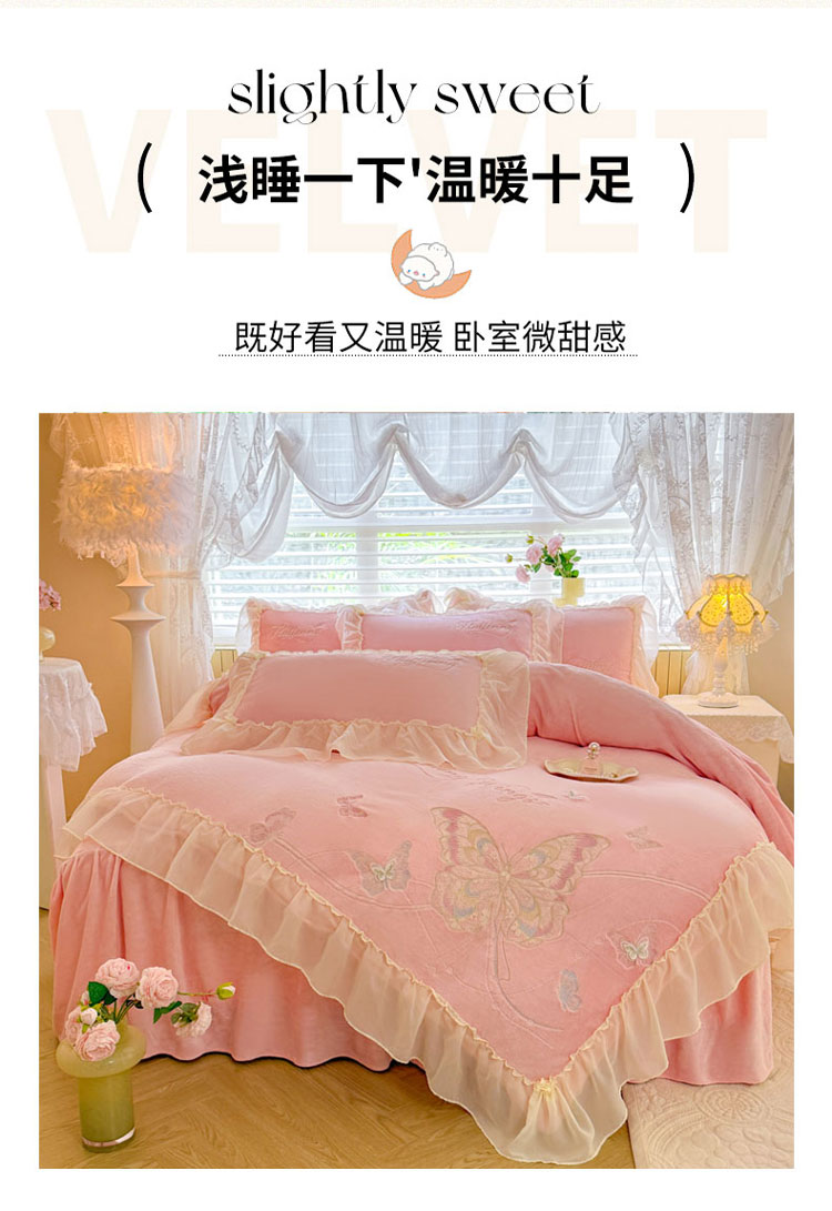 当前位置: 91家纺网 > 商品网购 > 床品套件 > 四件套 > 牛奶绒四件套 > (总)漫布云 2025新款简约ins风A类全消光230g牛奶绒公主绒四件套床裙款被套-彩蝶系列 彩蝶-香芋紫
