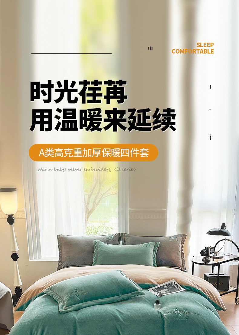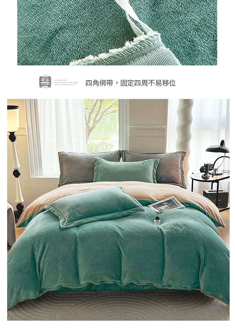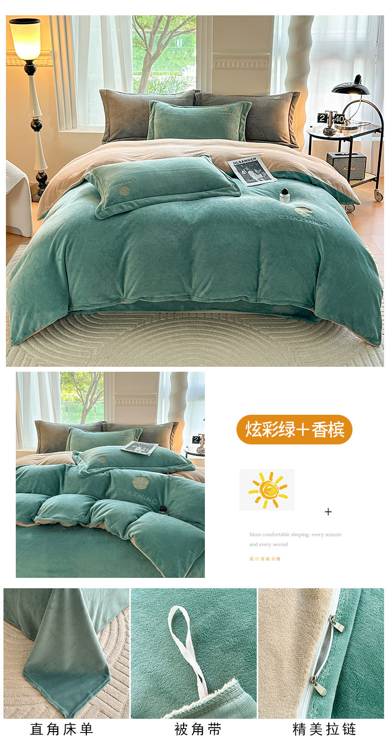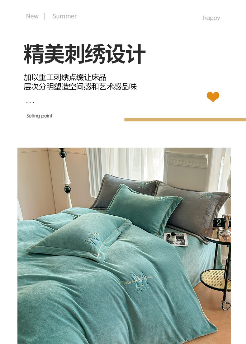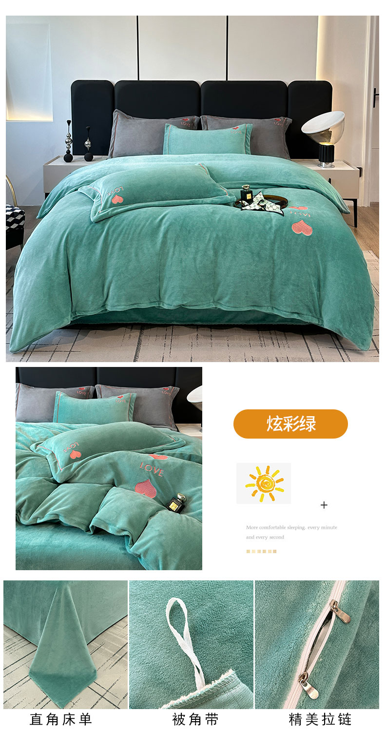 当前位置: 91家纺网 > 商品网购 > 床品套件 > 四件套 > 牛奶绒四件套 > 宇彬家纺 2025新款母婴级牛奶绒婴儿绒刺绣四件套 M款 炫彩绿-香槟