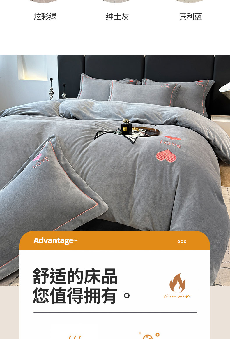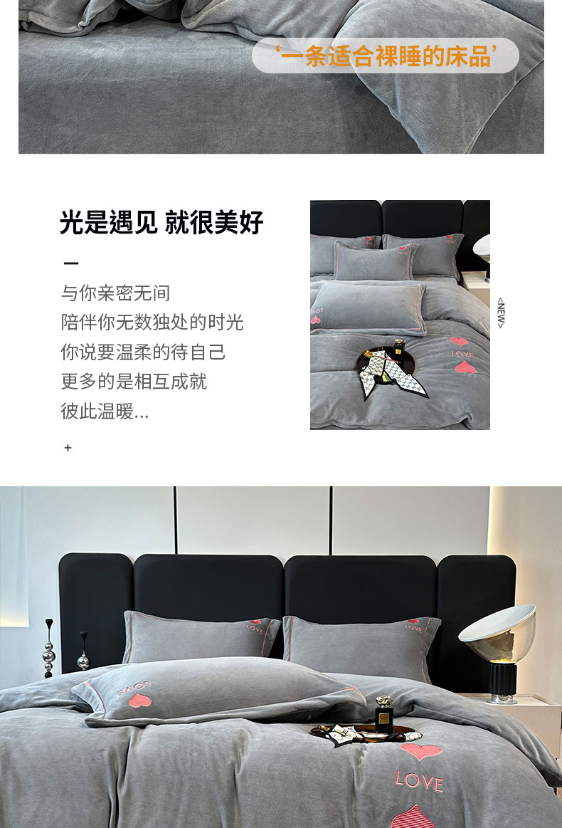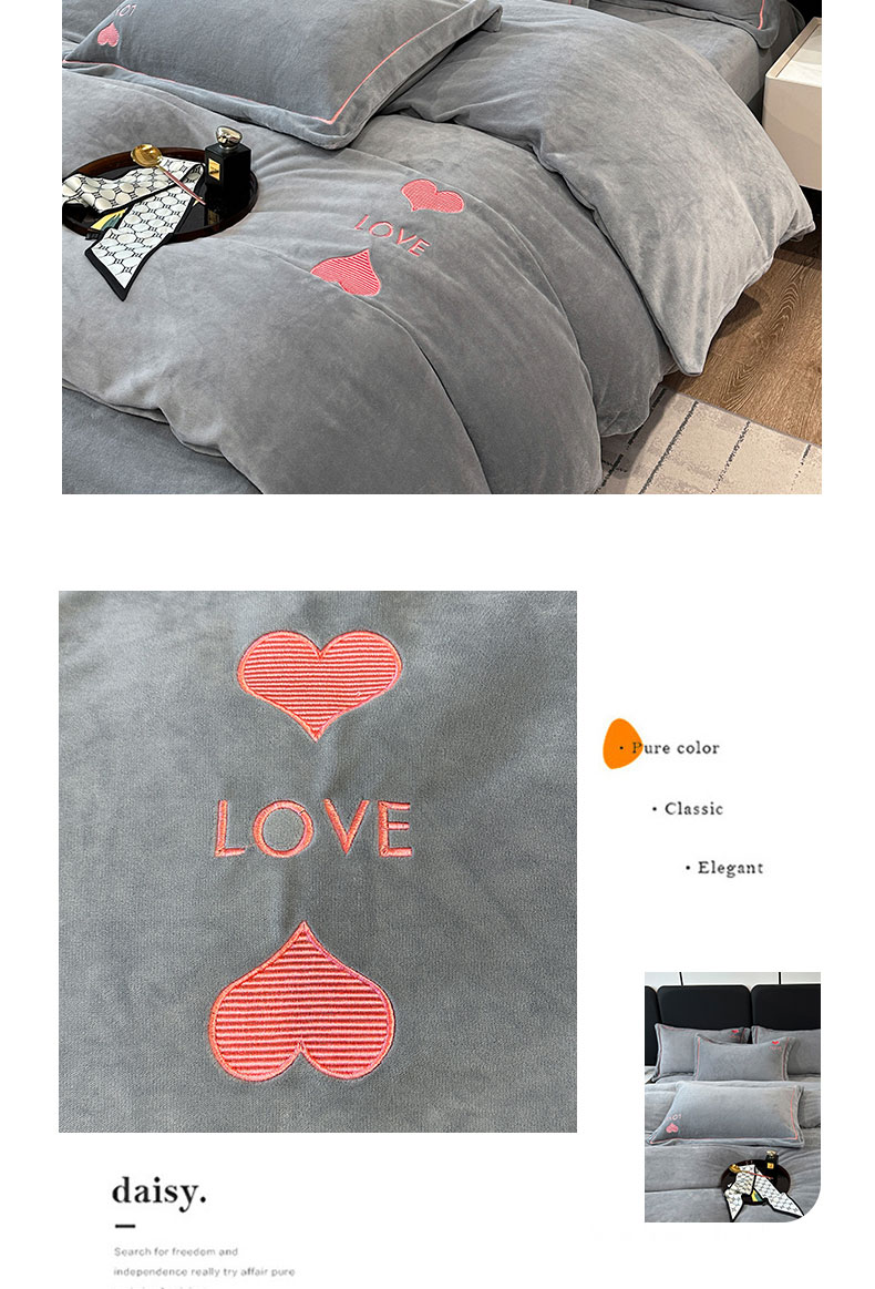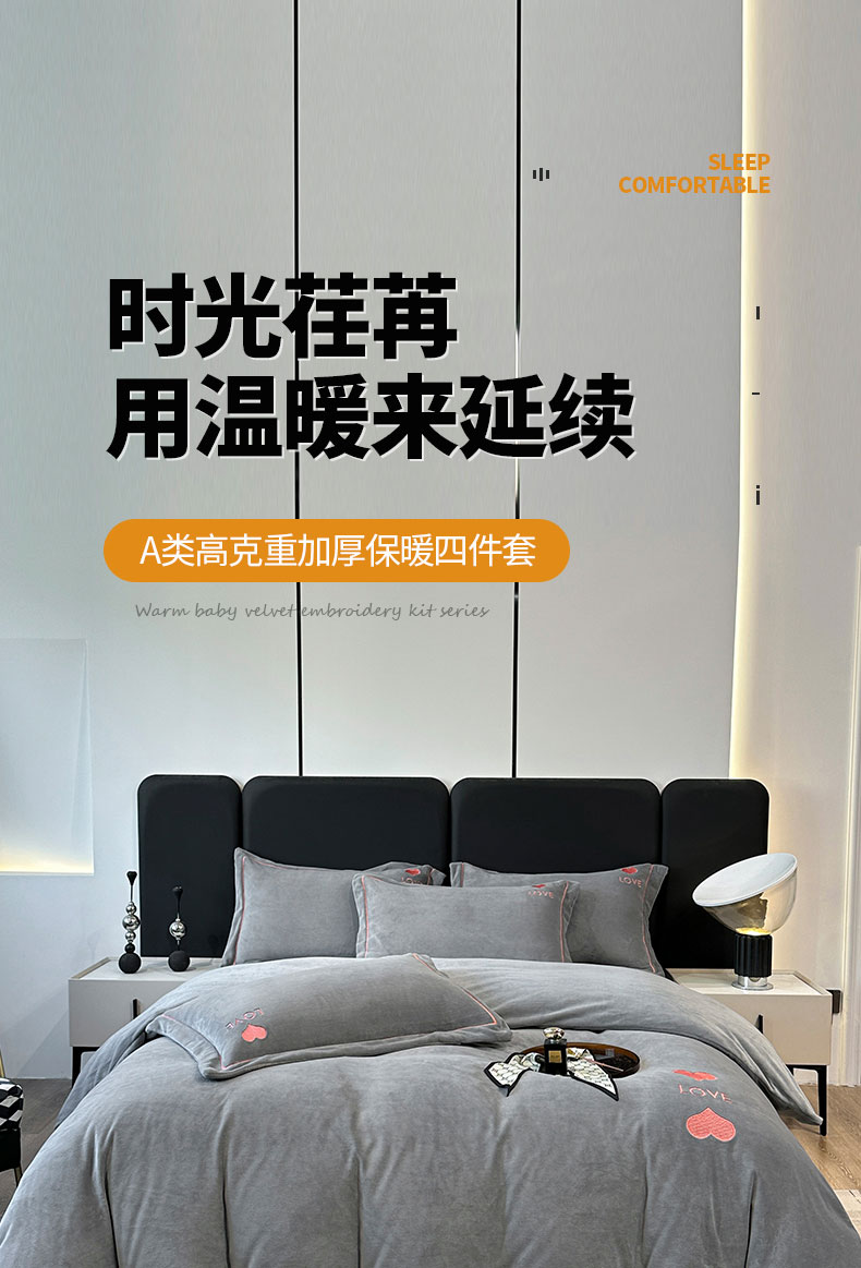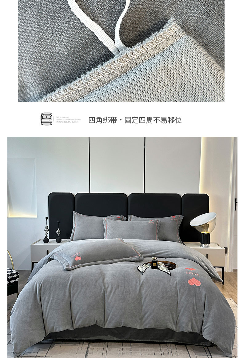 当前位置: 91家纺网 > 商品网购 > 床品套件 > 四件套 > 牛奶绒四件套 > 宇彬家纺 2025新款母婴级牛奶绒婴儿绒刺绣四件套 爱心-绅士灰