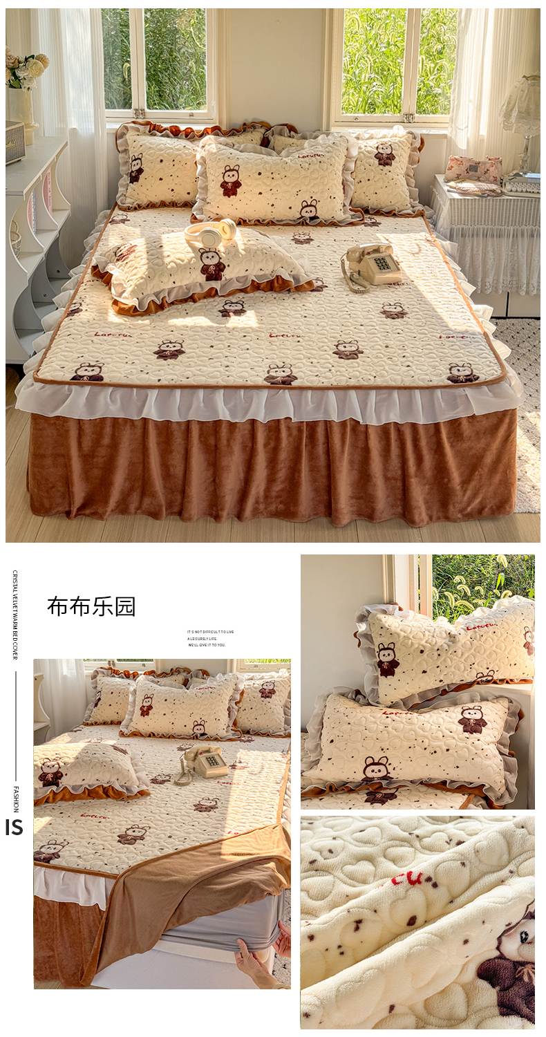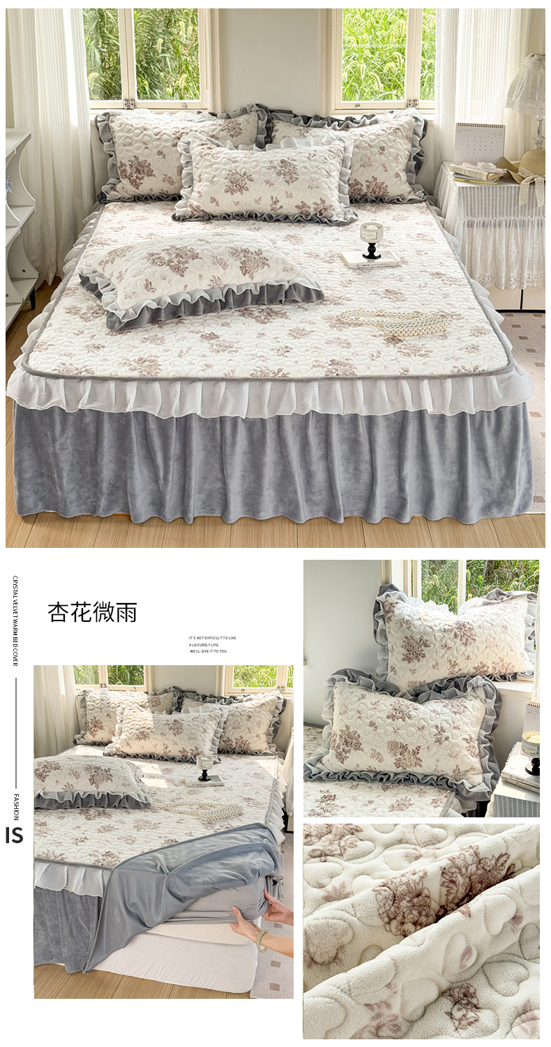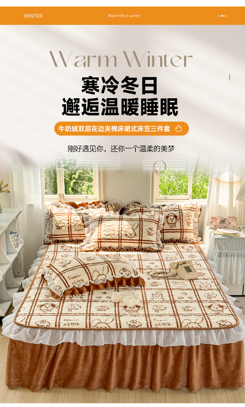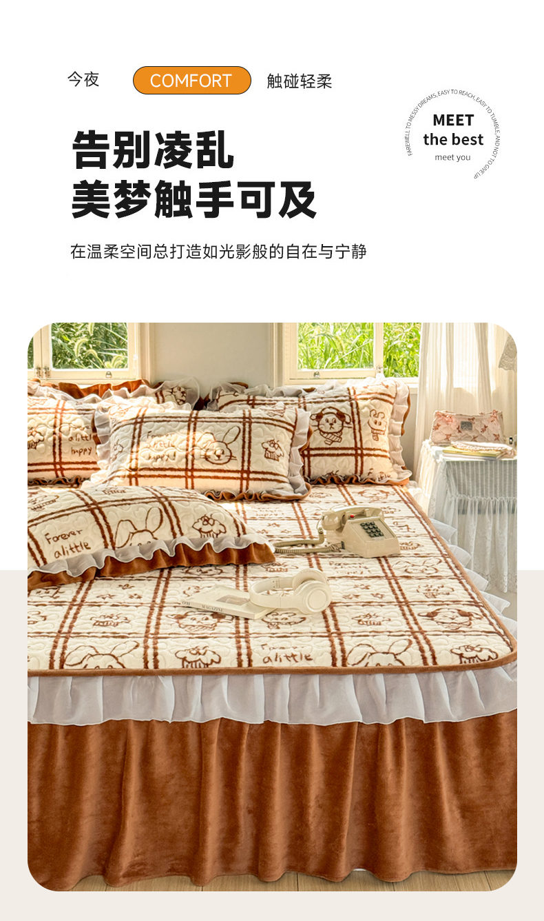 当前位置: 91家纺网 > 商品网购 > 床品套件 > 三件套 > 禧缘家纺(原梦想家) 2025新款夹棉双层花边牛奶绒床笠三件套系列 摩卡小镇