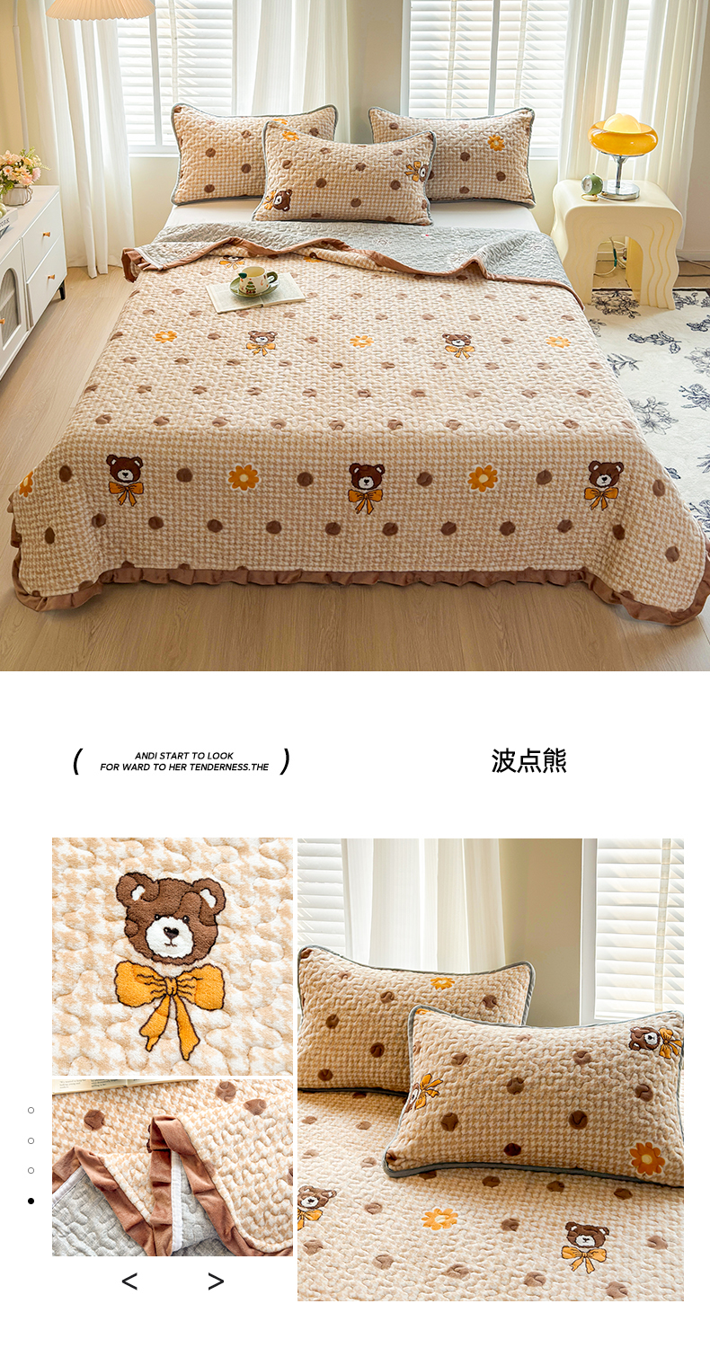 (总)梦莱家纺 2025新款牛奶绒花边单床盖三件套,爱心草莓熊,爱心点点,爱心熊,宝利格,波点熊,花漾玫瑰,花语,可爱南瓜-卡其,可爱南瓜-绿,可爱松鼠,可爱兔兔,库洛米,蓝白条纹格,萌兔乐园-粉,萌兔乐园-蓝,绵绵细语,奇趣南瓜,史努比,摇曳,优雅蝴蝶结,海盐蓝,海洋蓝,奶茶色,奶油紫,樱花粉,优雅灰,砖红色,潮牌熊-灰,潮牌熊-咖,蝶舞,滑板熊猫,可爱小兔,浪漫花语-粉,南瓜爱心,蔷薇花开,时尚熊,微笑熊,心意,摇曳-灰,摇曳-蓝